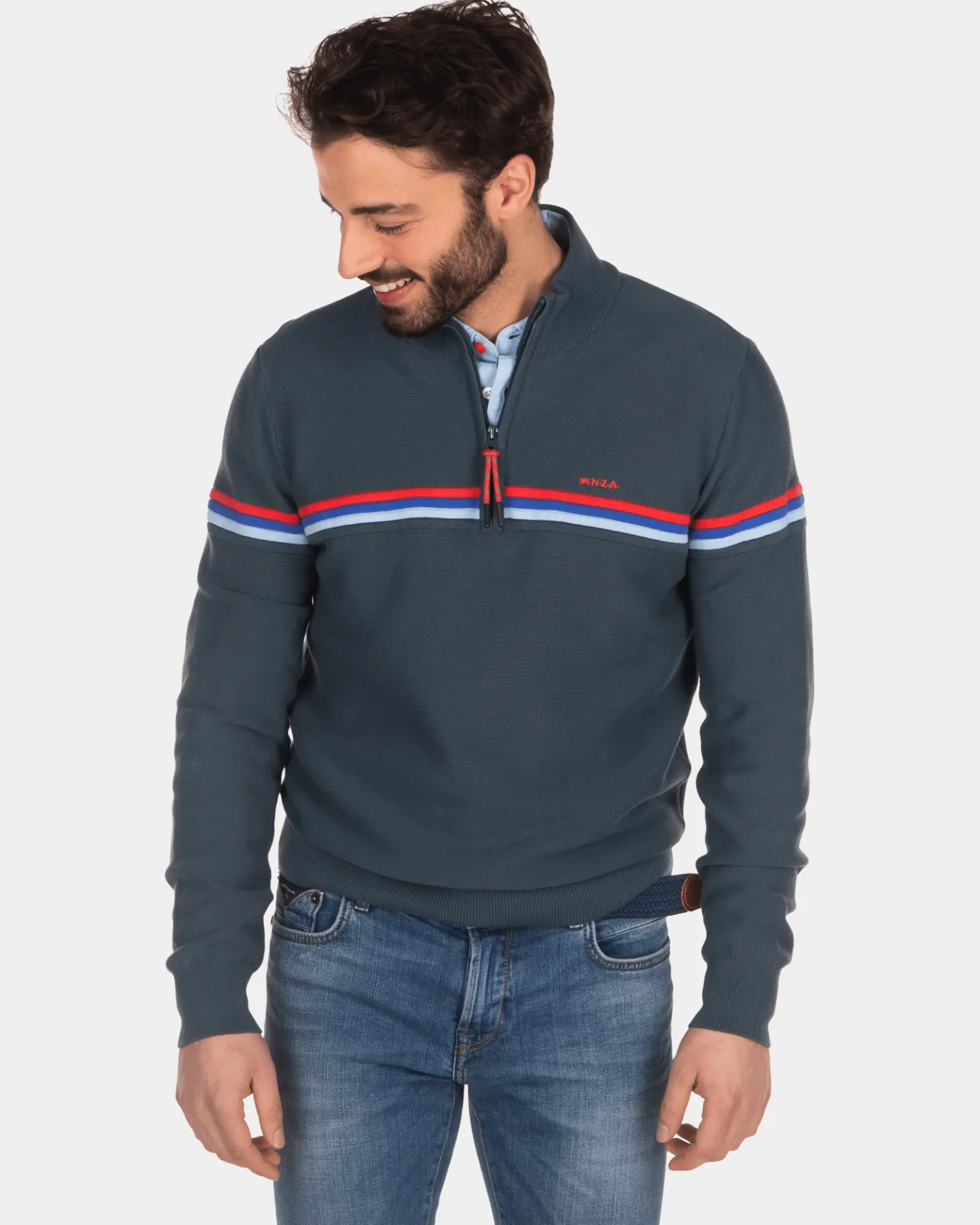 Baumwollpullover mit halbem Reißverschluss – Green Grey