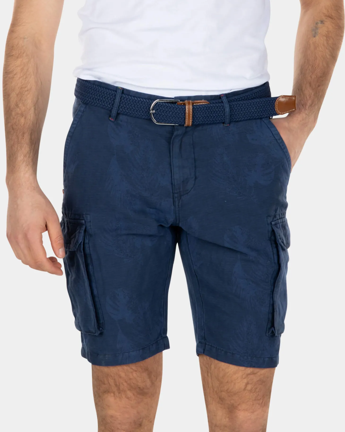 Bedruckte Cargo-Shorts aus Leinen und Baumwolle – Key Navy