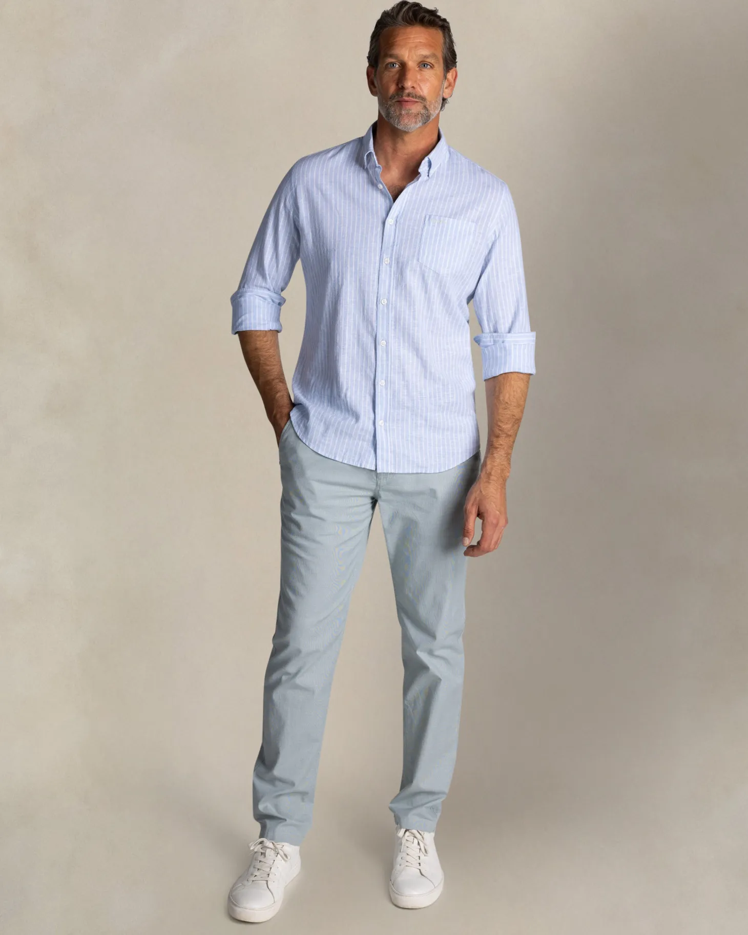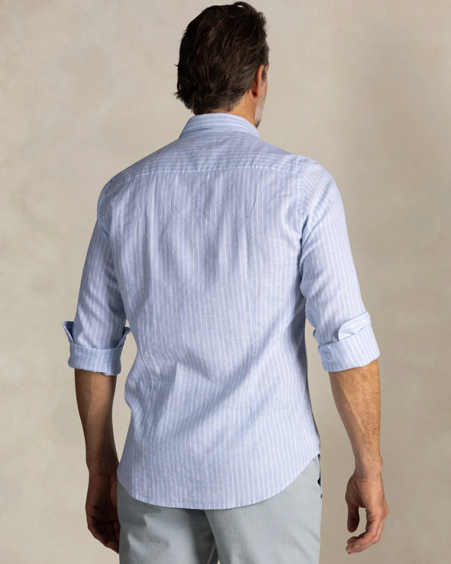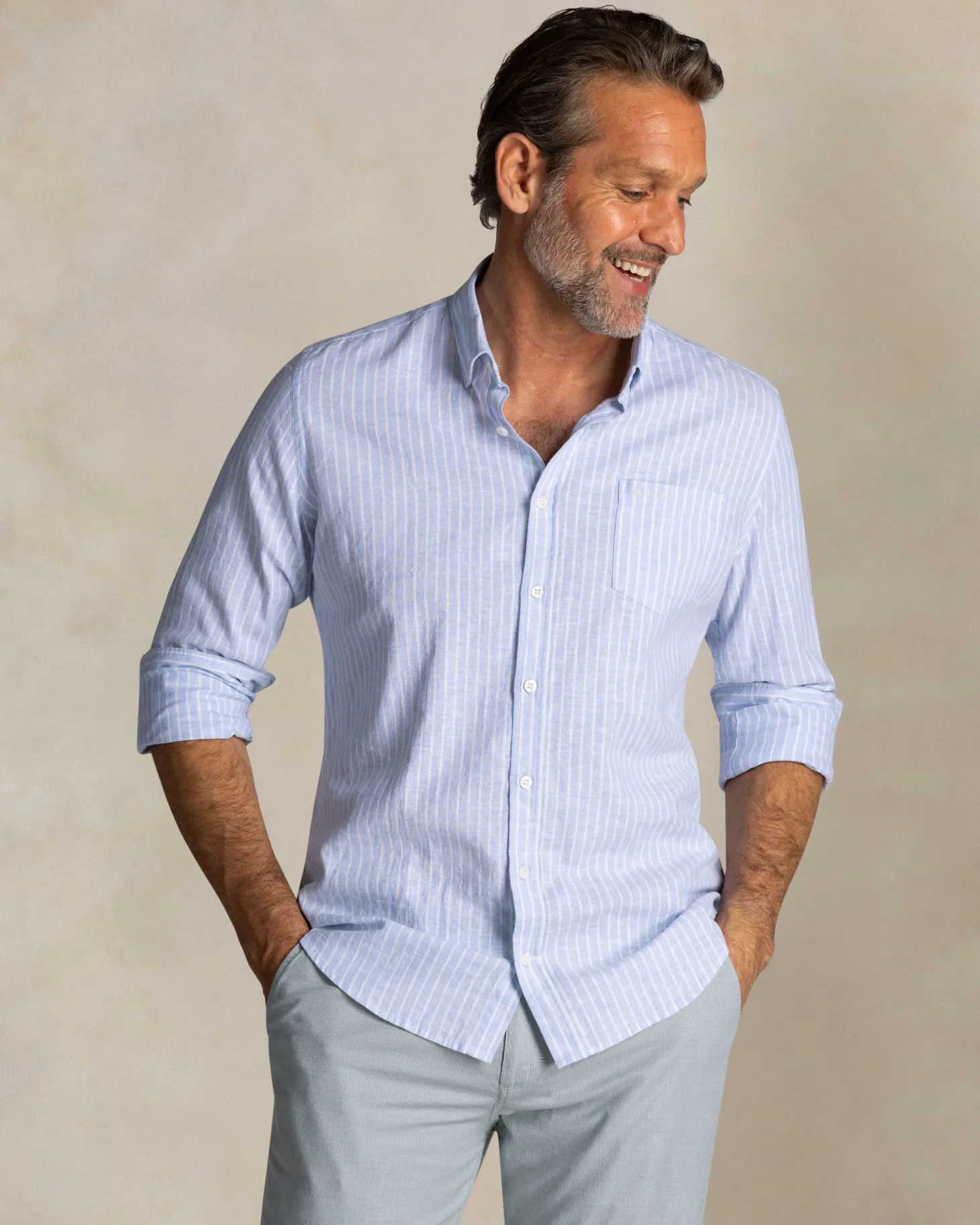 Blau gestreiftes Leinenhemd mit Knopfleiste
