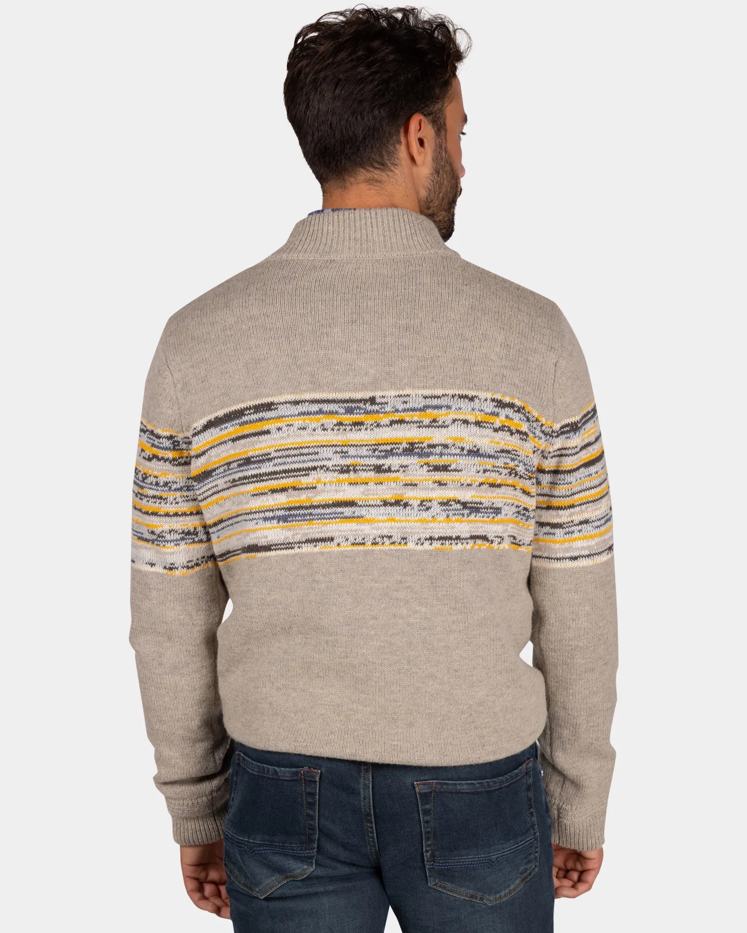 Brauner Baumwollpullover mit gelb-schwarzem Print – Chestnut