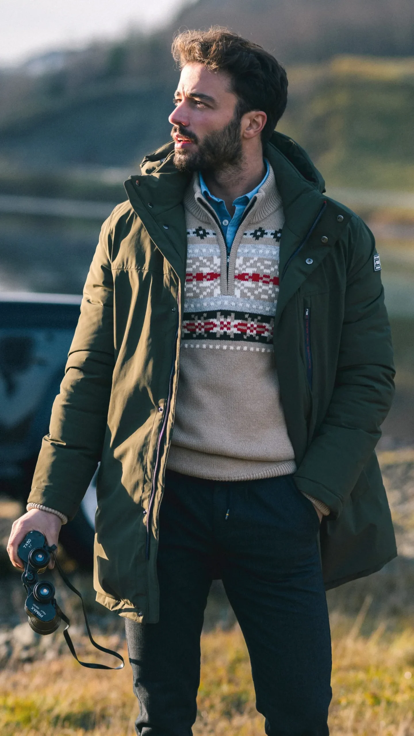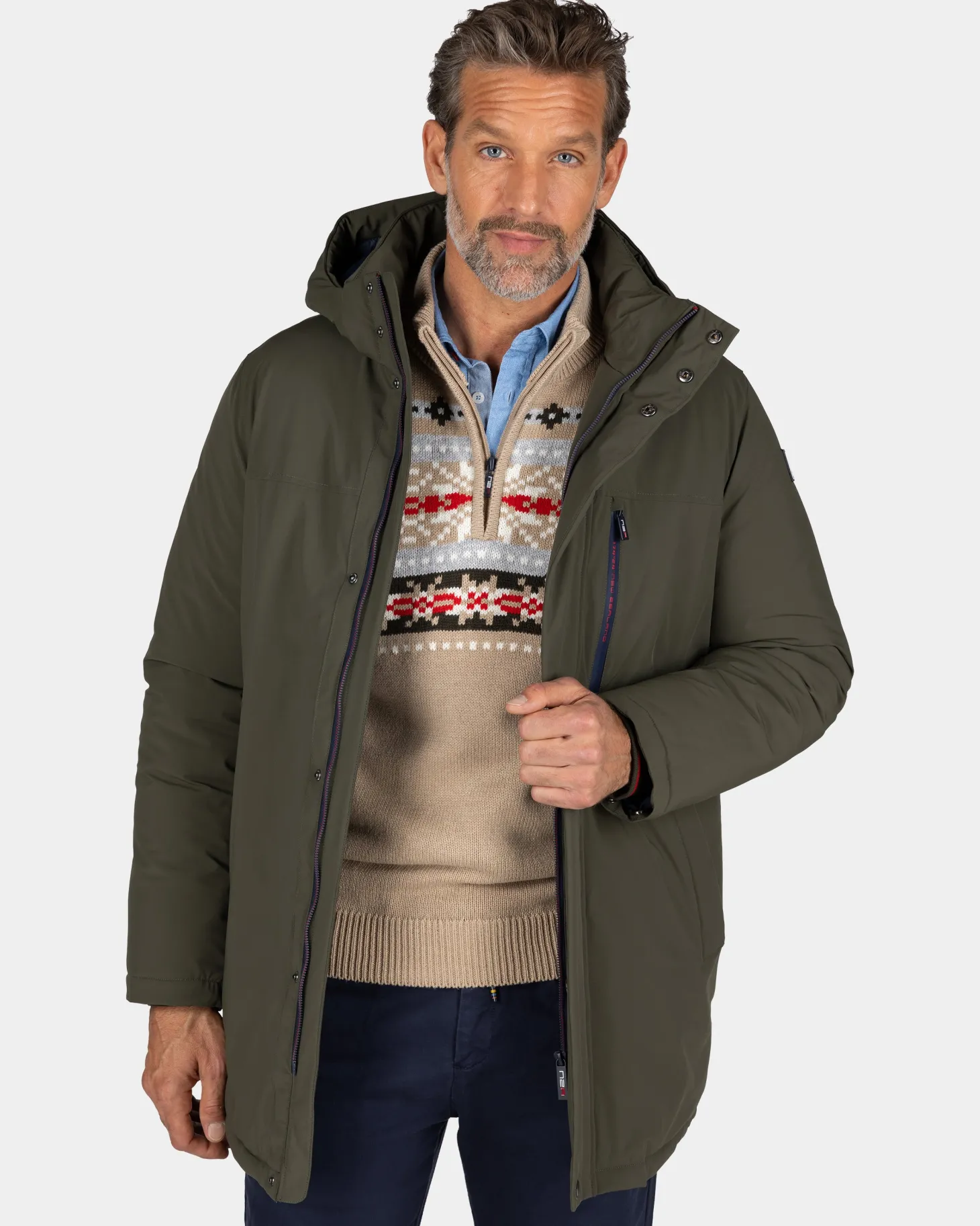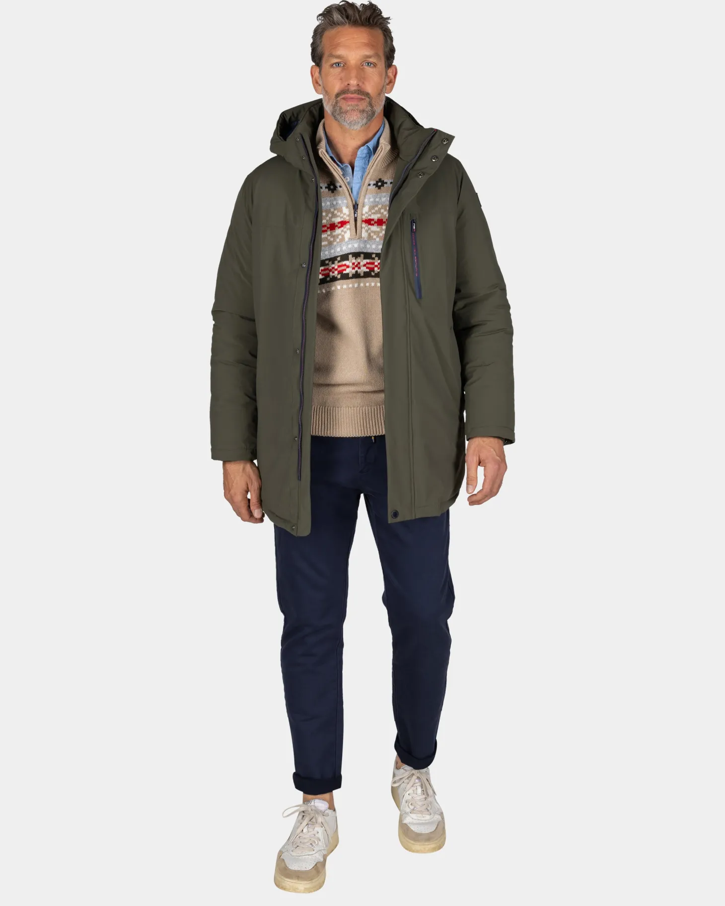Dunkelgrüner Parka mit Stehkragen – Gravel Green