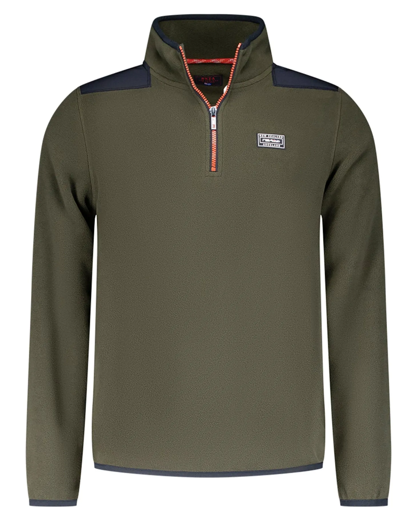 Dunkelgrünes Fleecehemd mit halbem Reißverschluss – Gravel Green