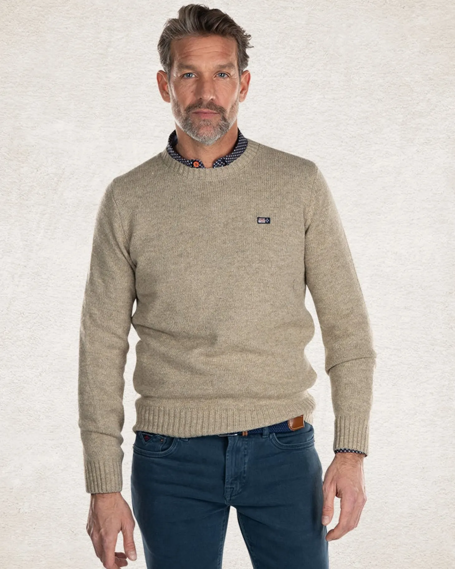 Einfacher Strickpullover mit Rundhalsausschnitt – Sahara Sand