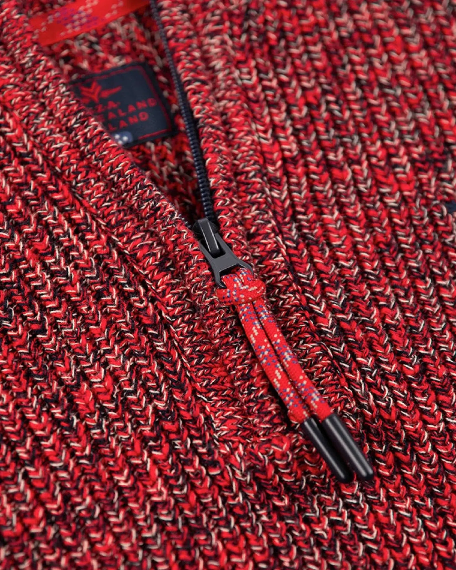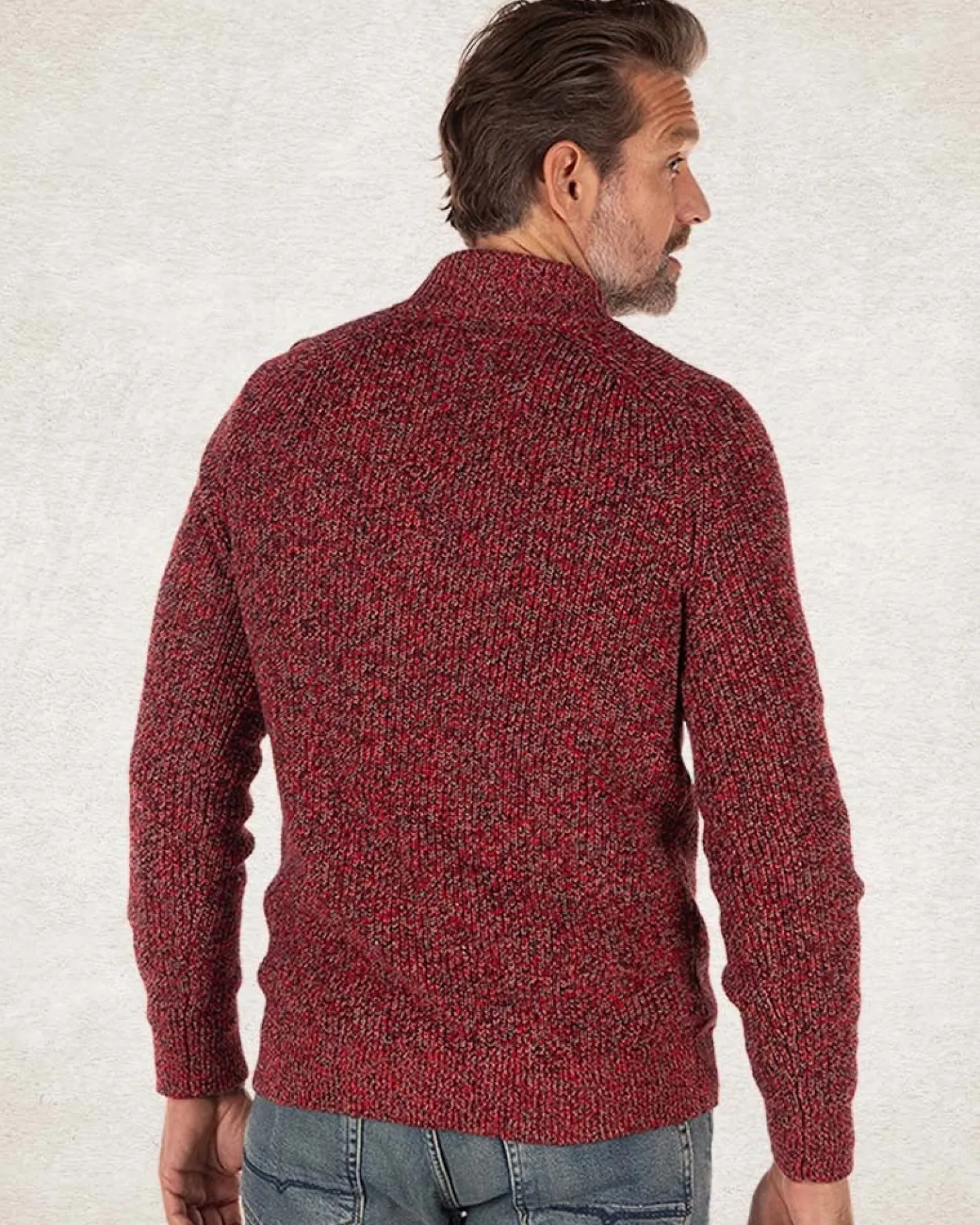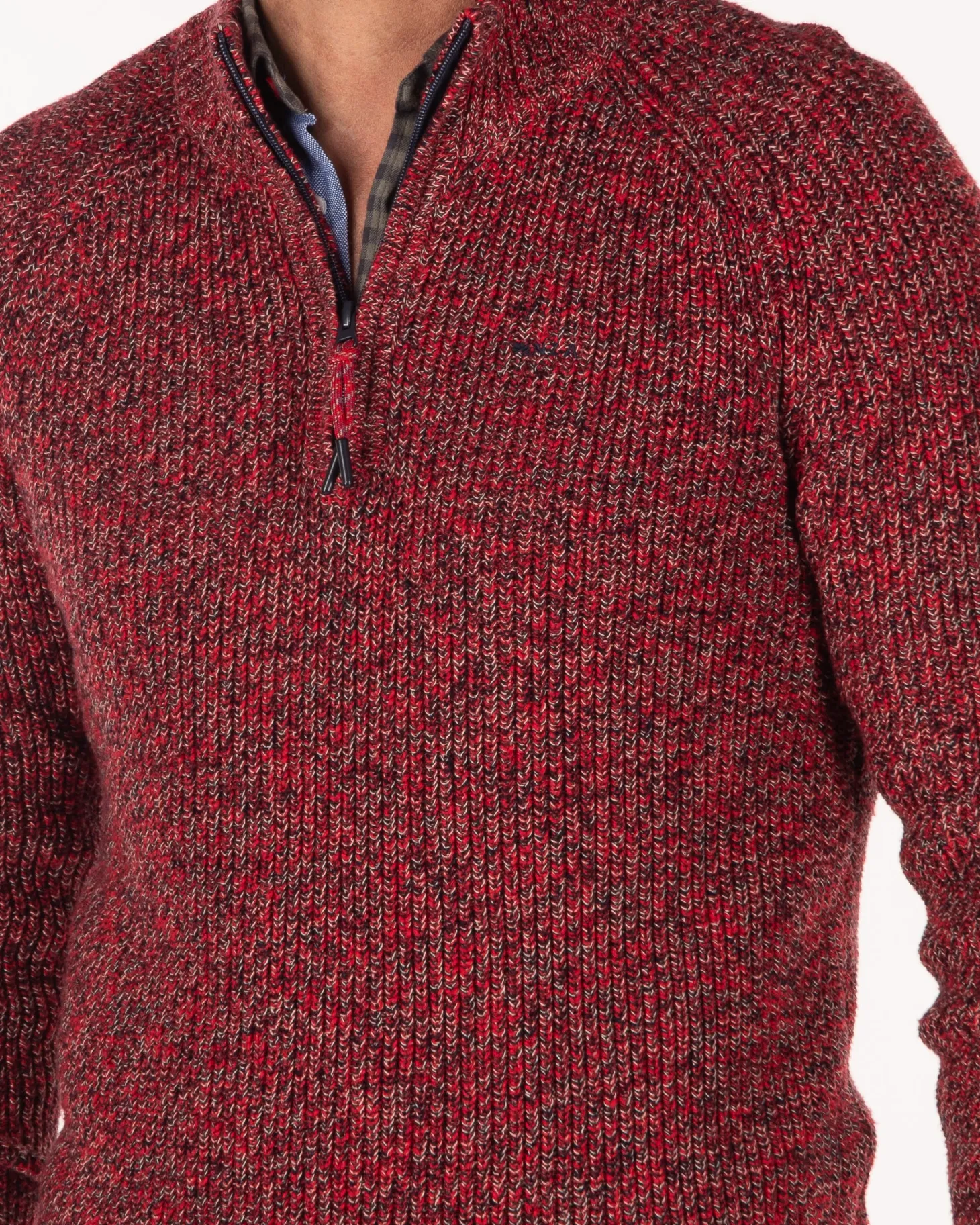 Einfarbiger Baumwollpullover mit halbem Reißverschluss – Carmine red