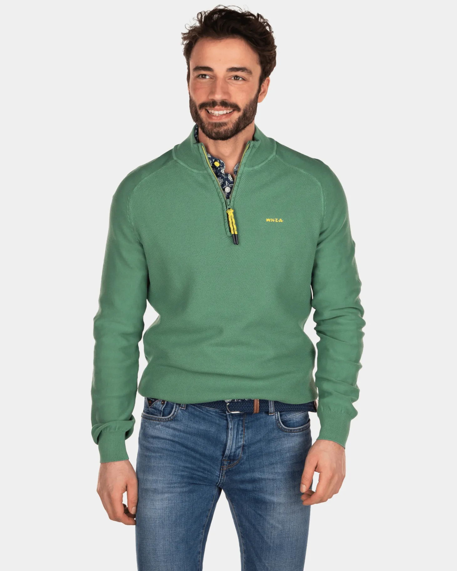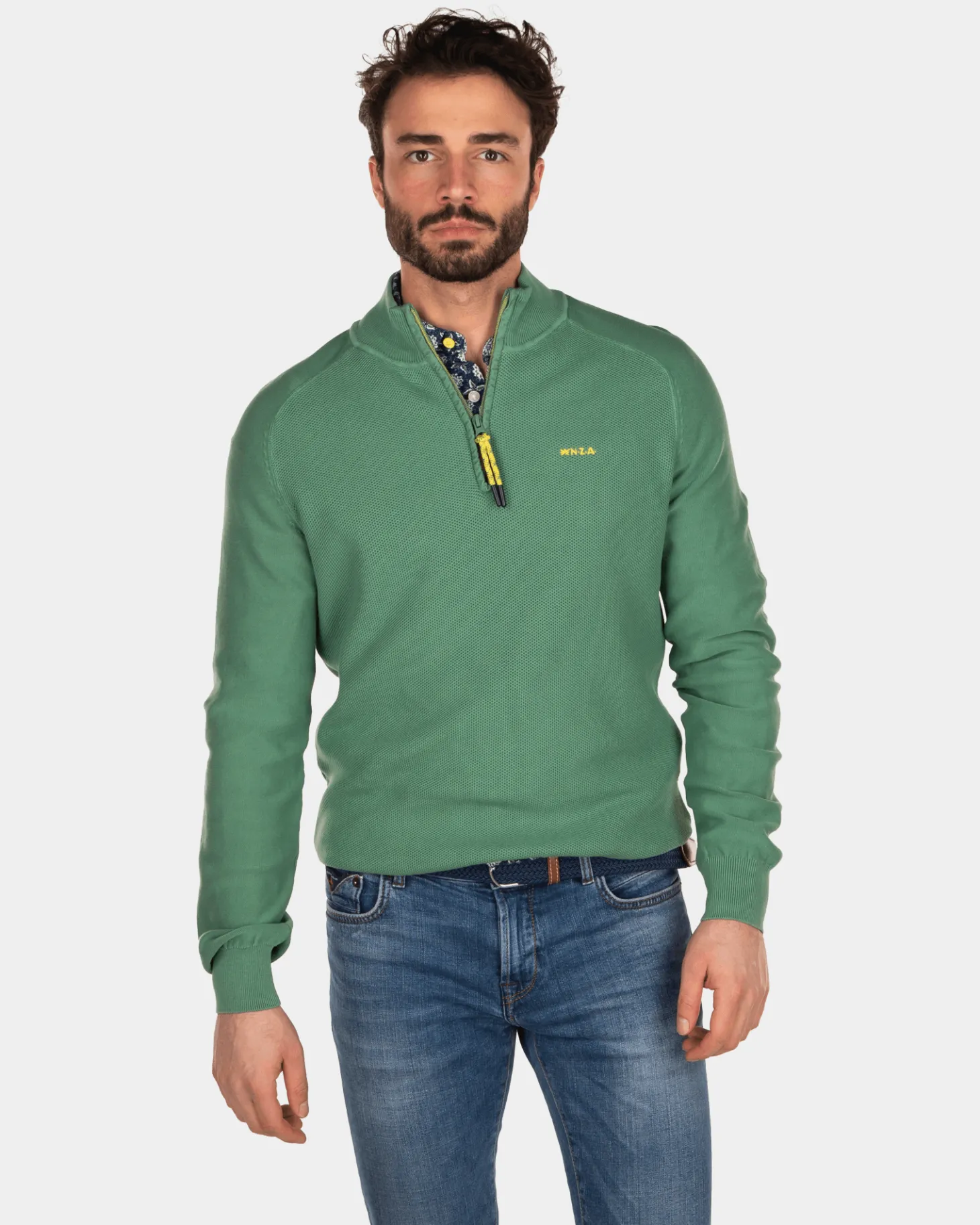 Einfarbiger Pullover mit halbem Reißverschluss aus Baumwolle – Active Army