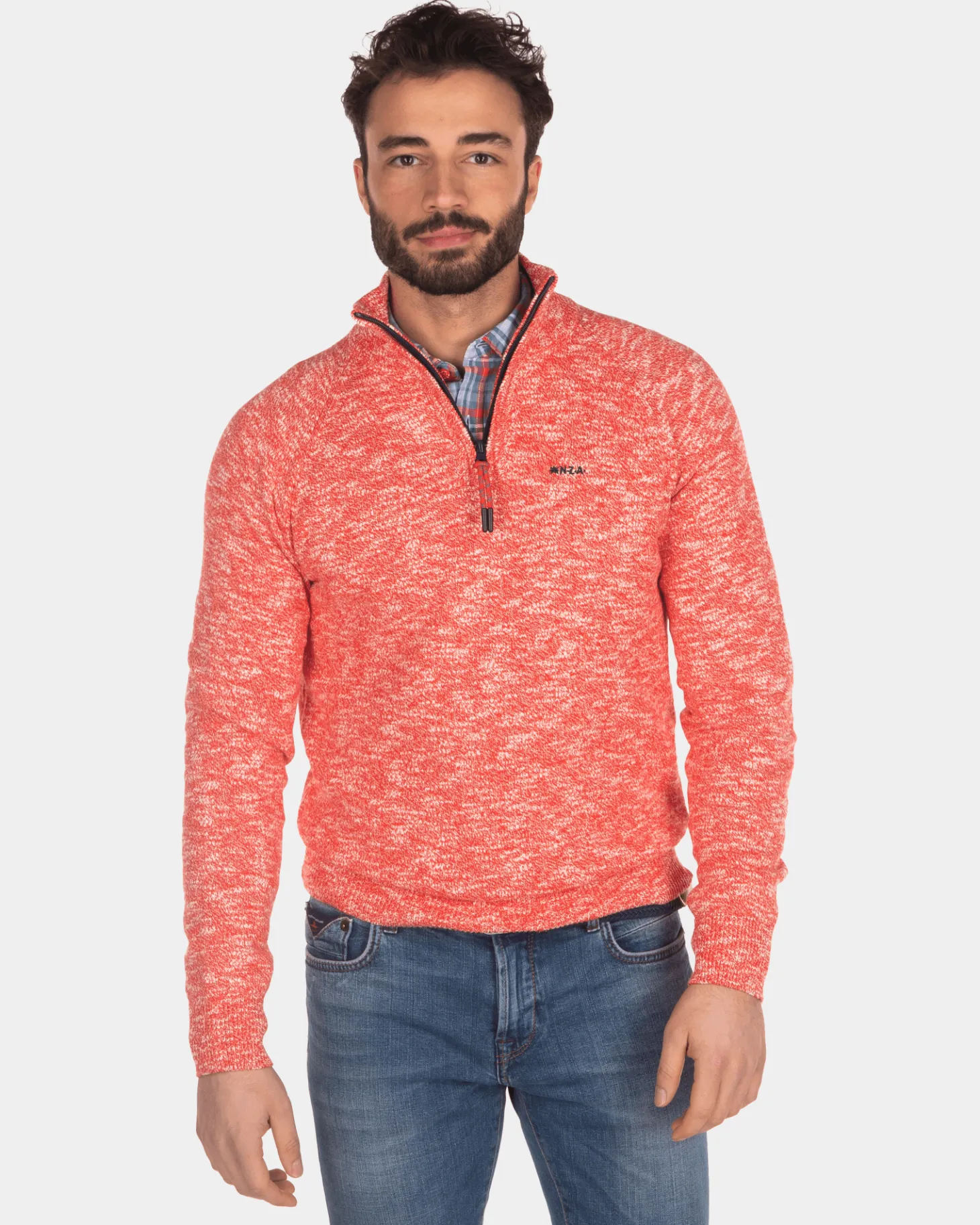 Einfarbiger Pullover mit halbem Reißverschluss – Orange Red