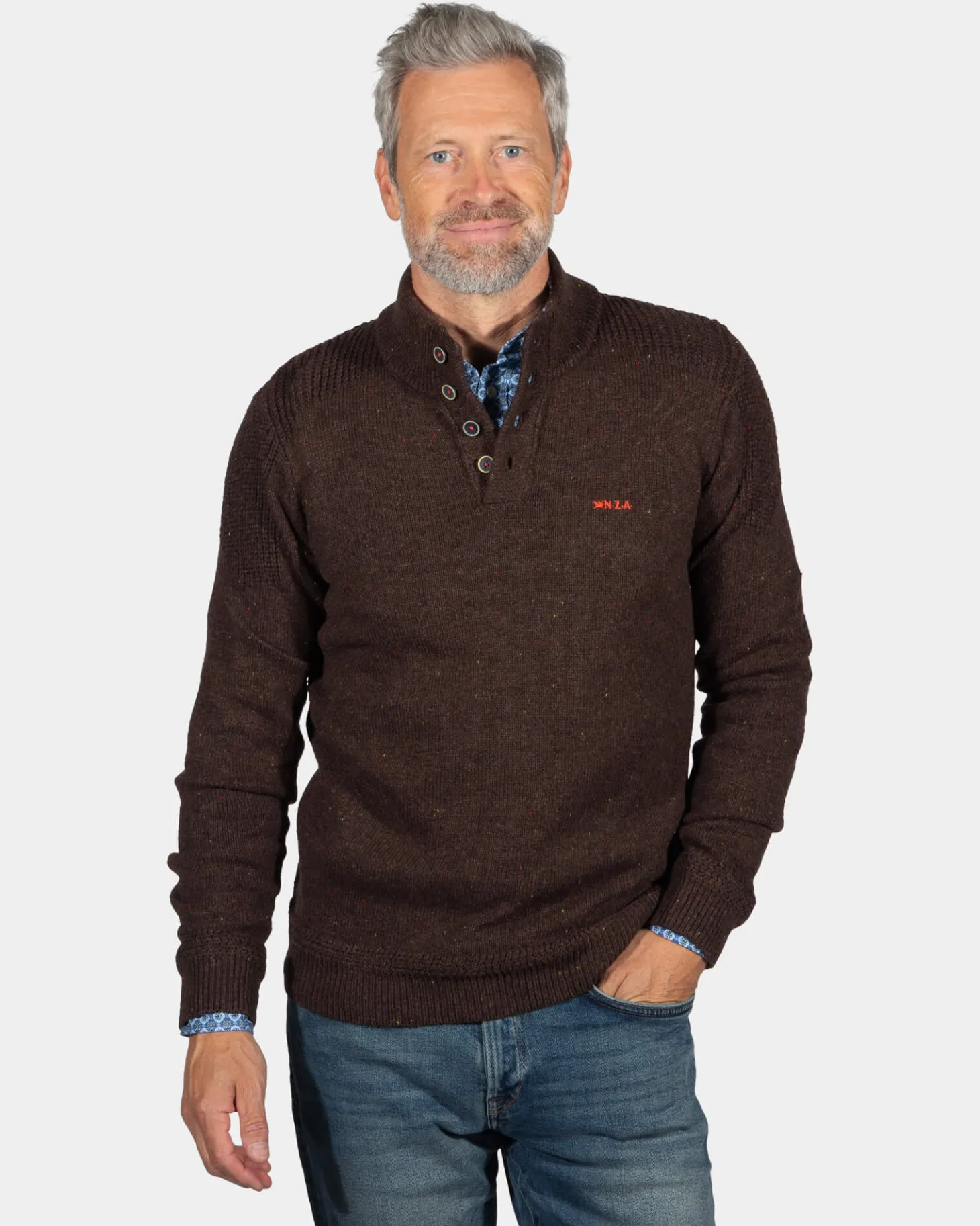 Einfarbiger Pullover mit Knöpfen Brownlee – Clay Brown