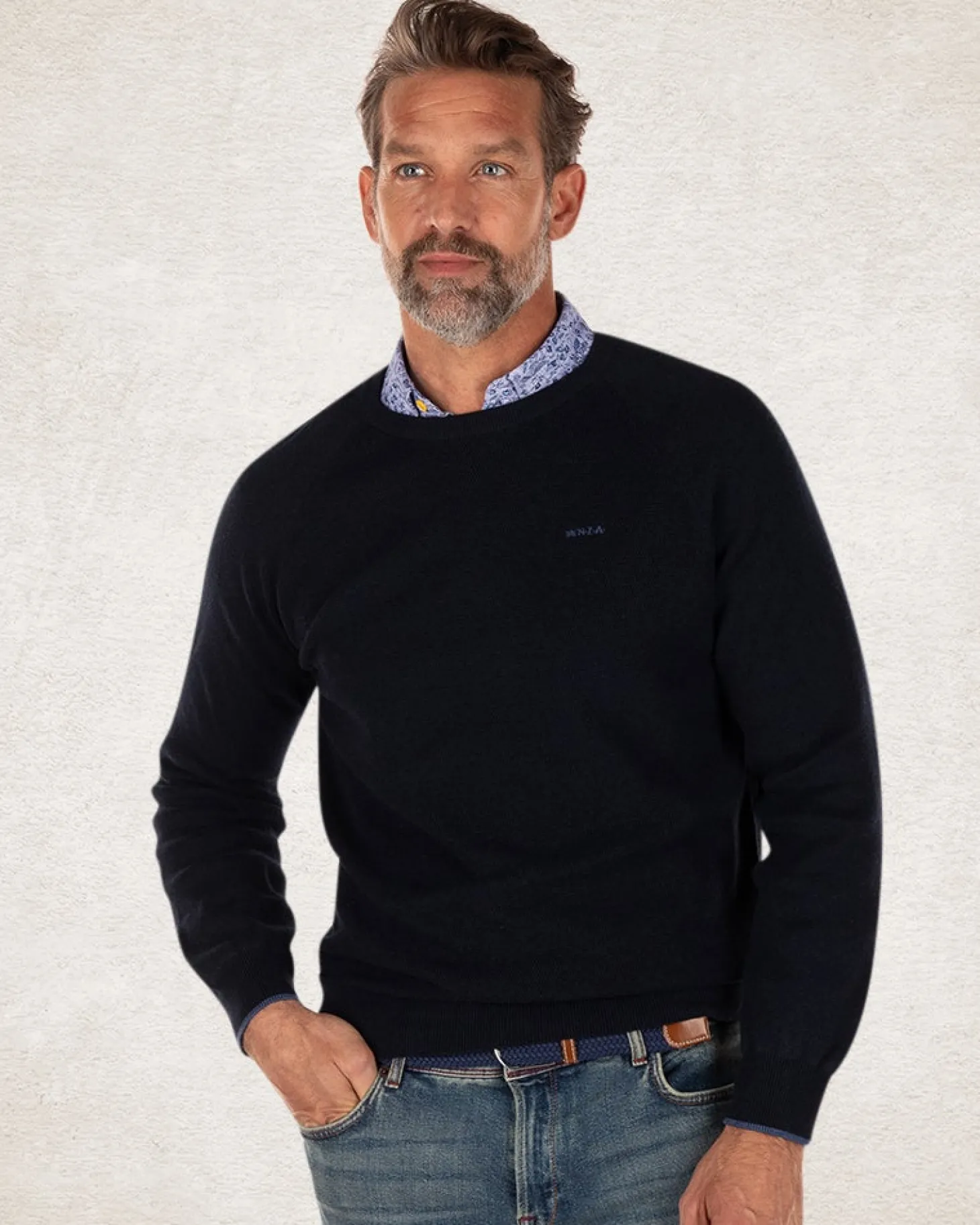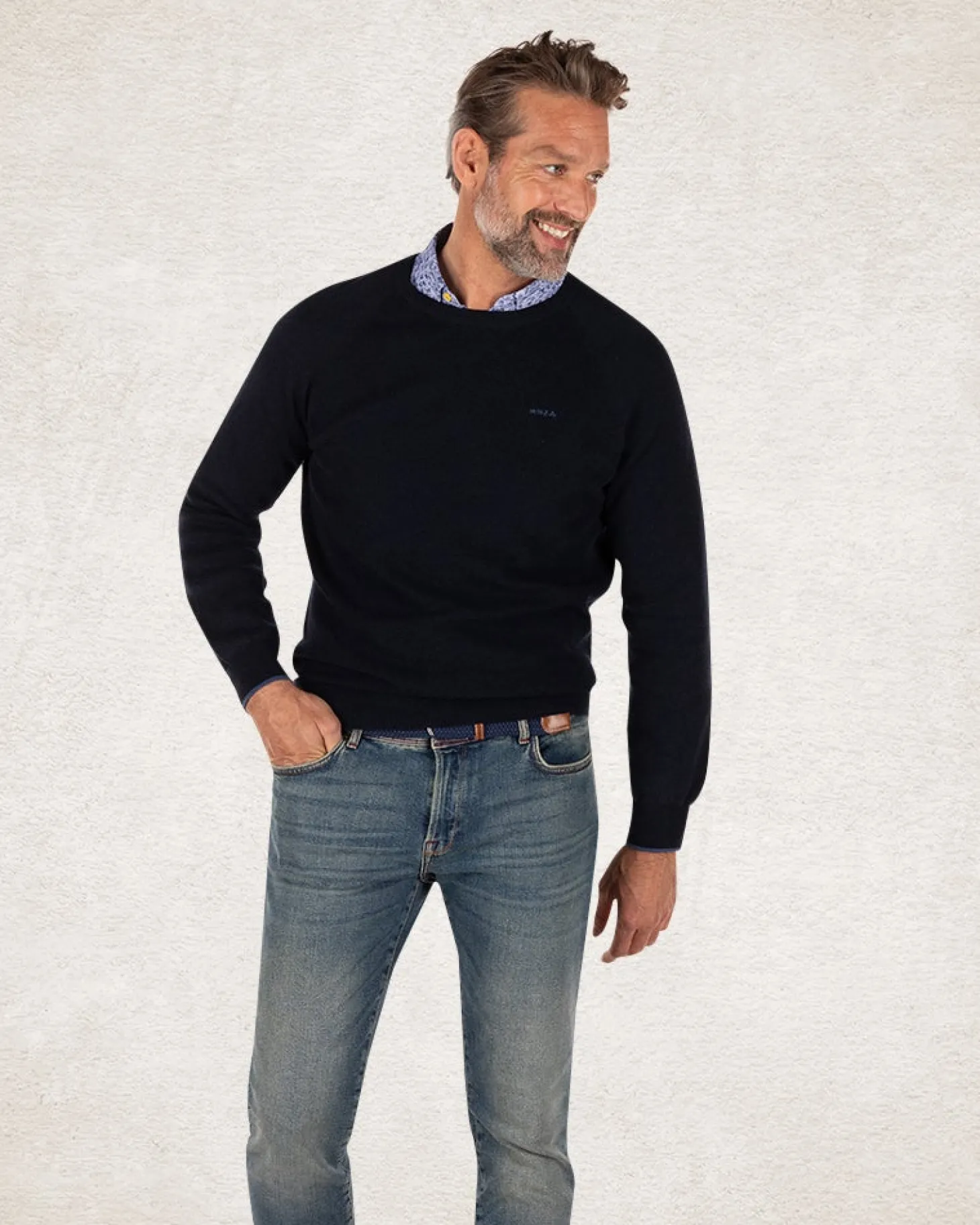 Einfarbiger Rundhalspullover aus Baumwolle