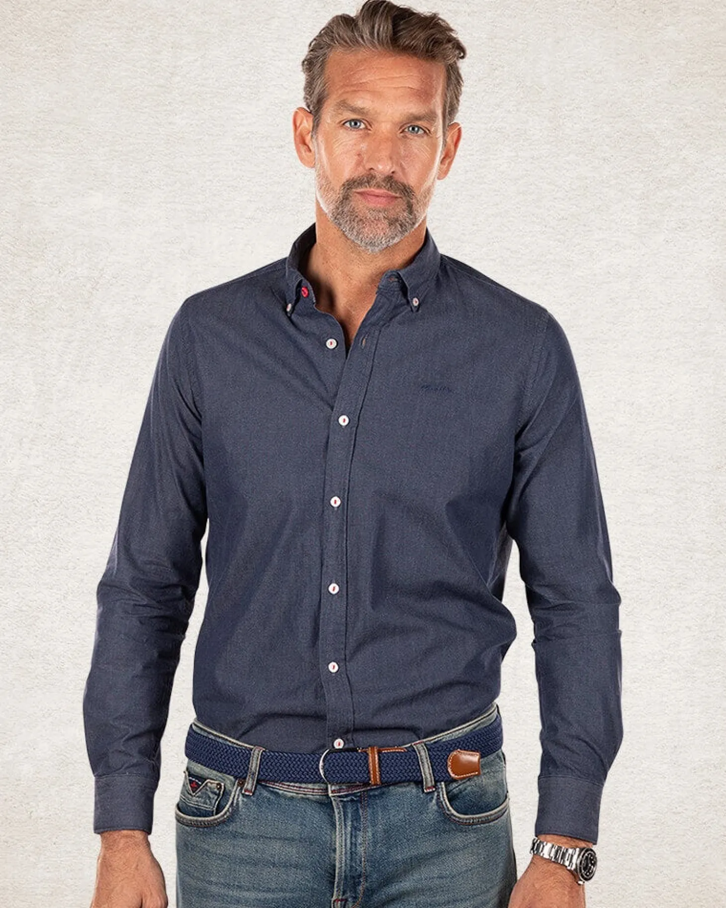 Einfarbiges Hemd aus Baumwolle – Pitch navy