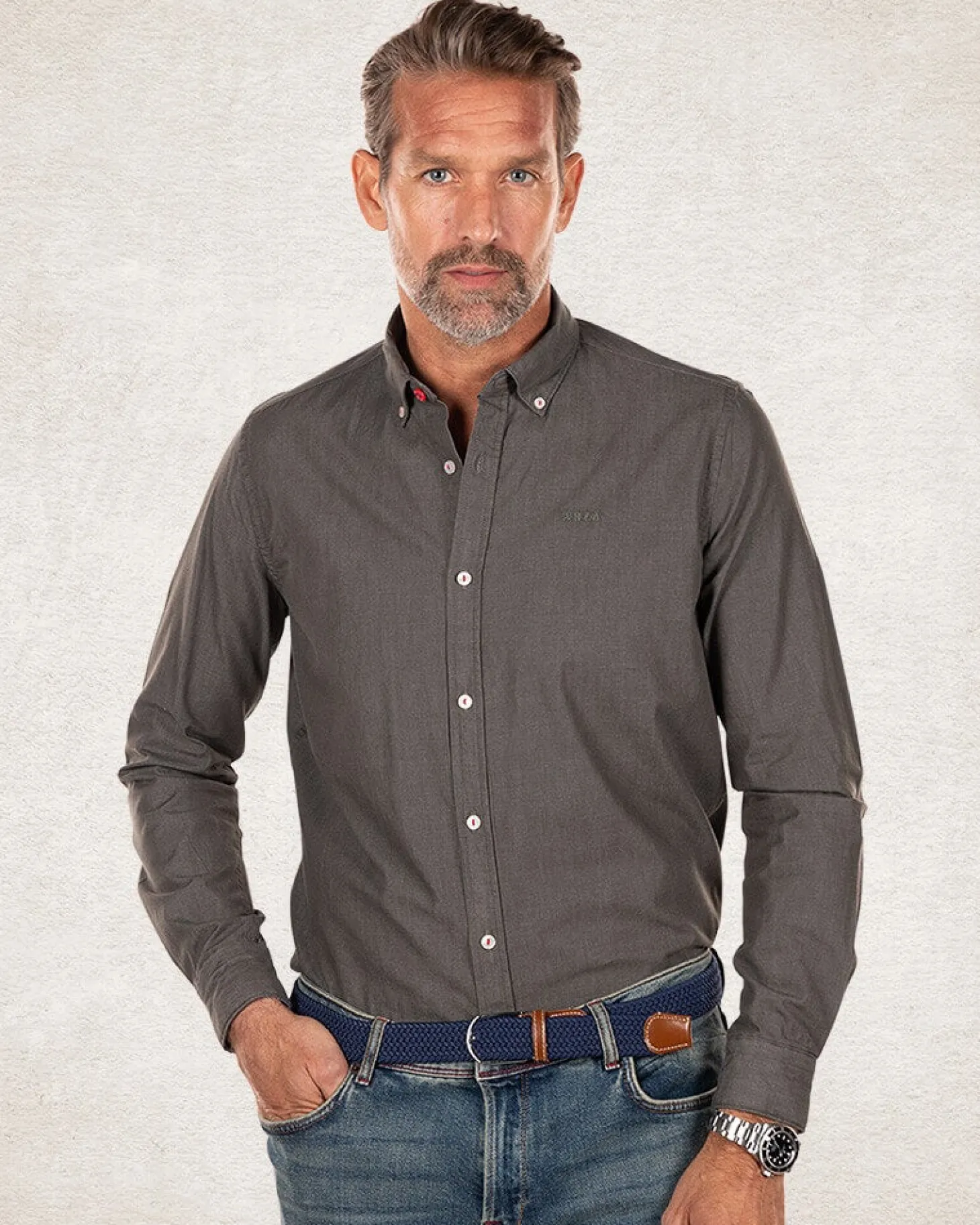 Einfarbiges Hemd aus Baumwolle – Smoked Green