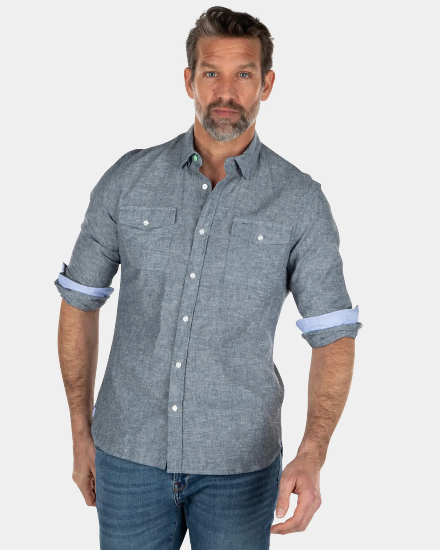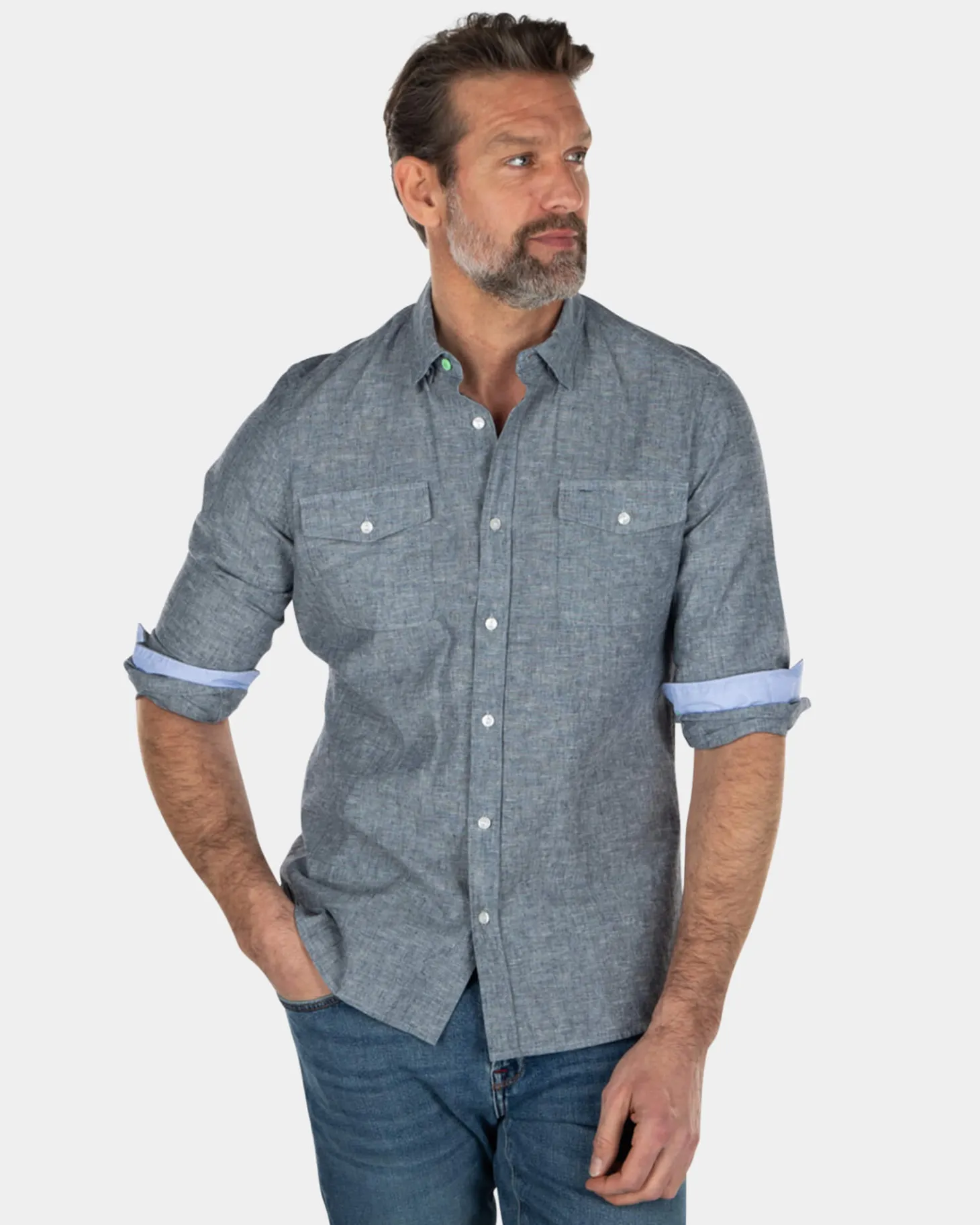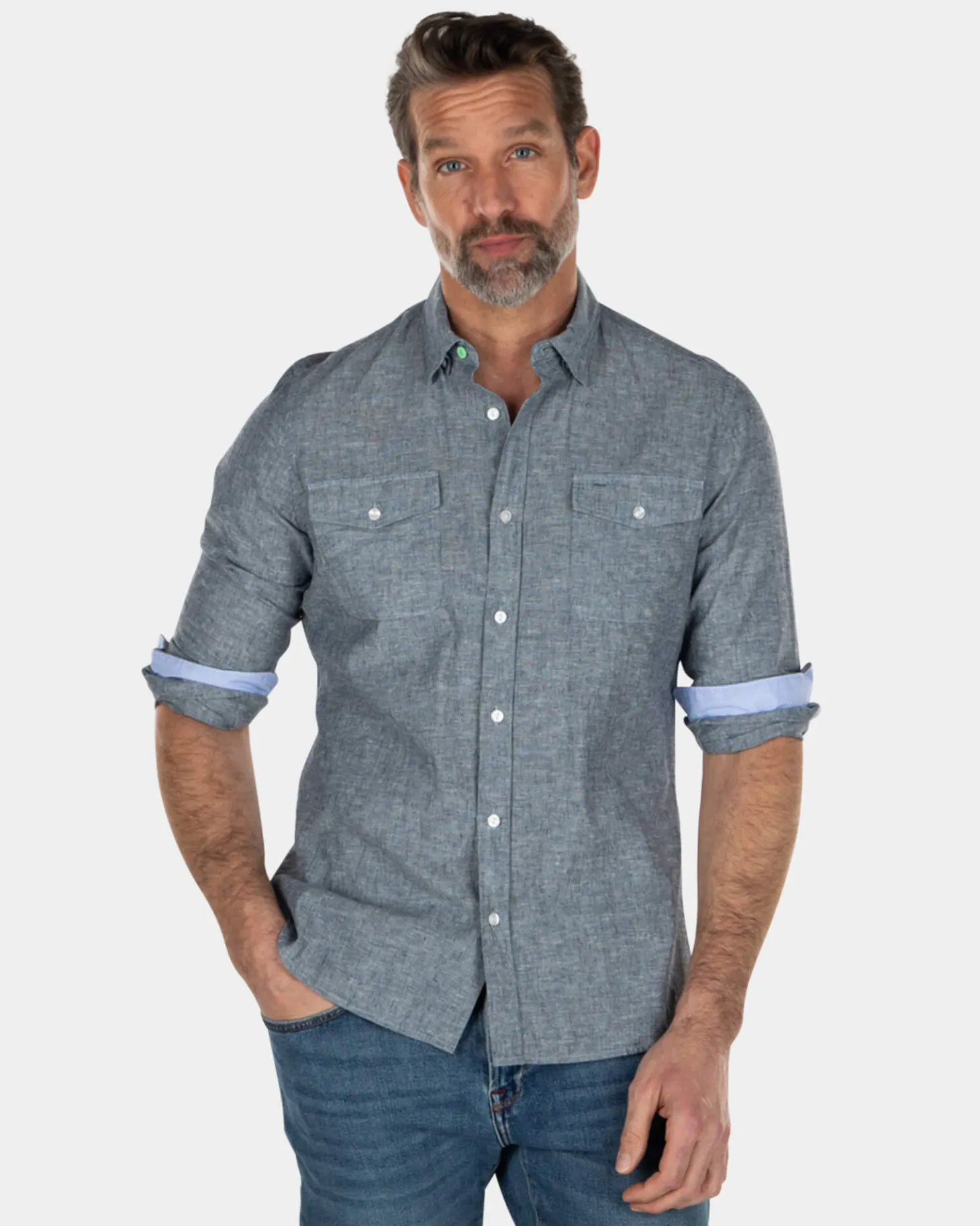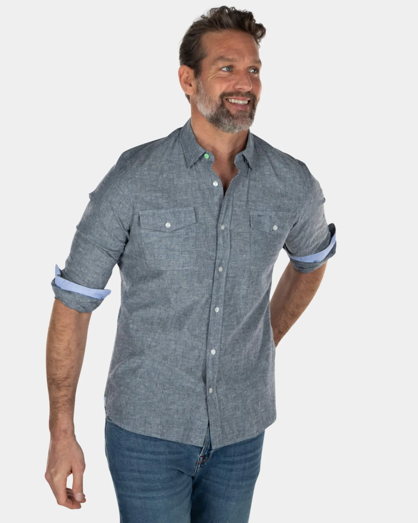 Einfarbiges Leinenhemd aus Baumwolle – Key Navy