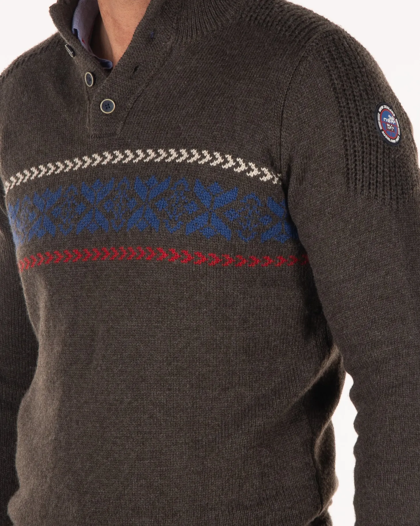Gestrickte pullover mit halber Knopfleiste – Smoked Green