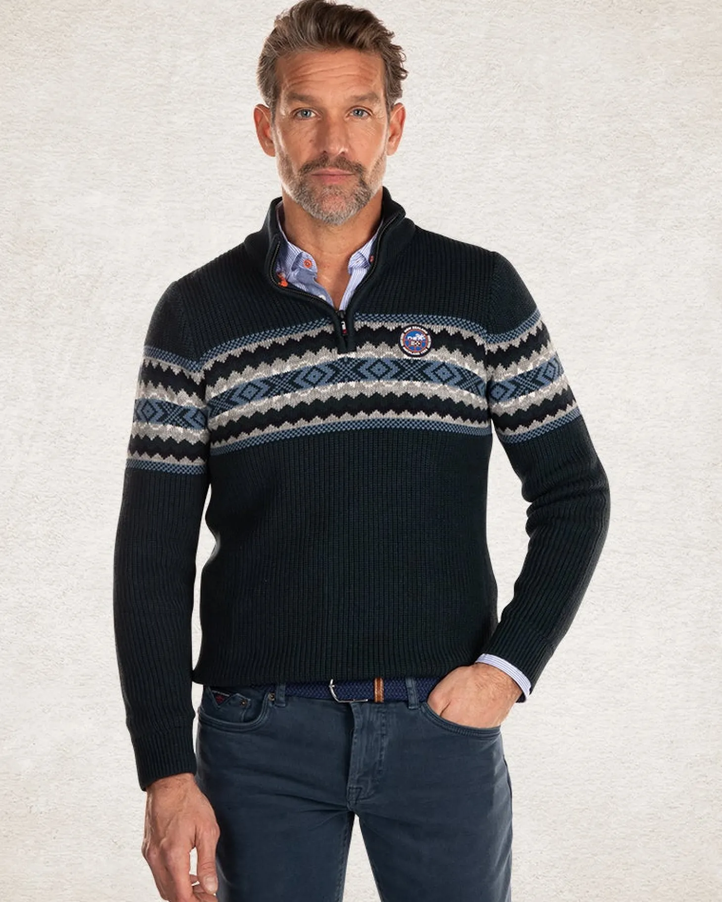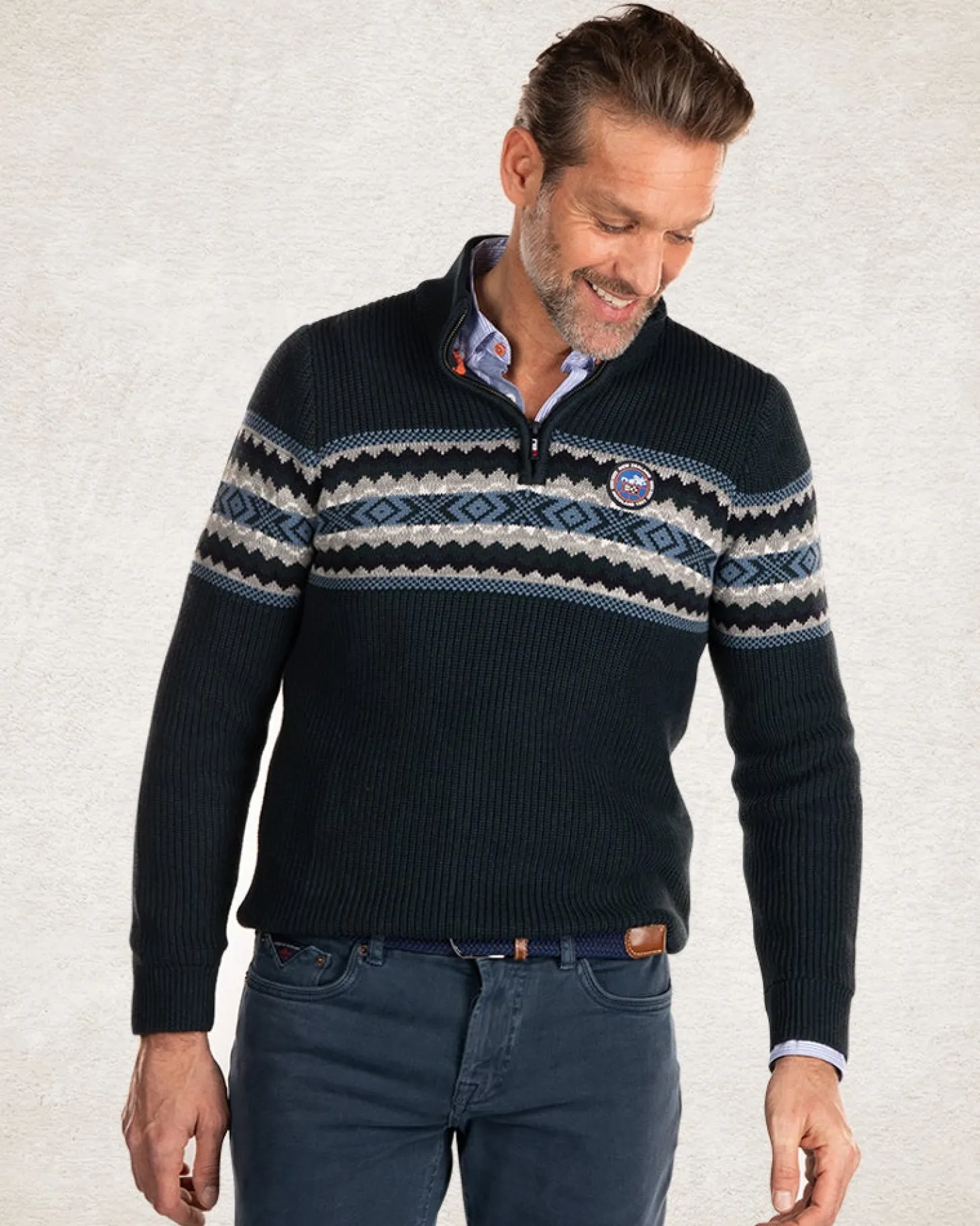 Gestrickter Pullover mit halbem Reißverschluss – Crushing Green