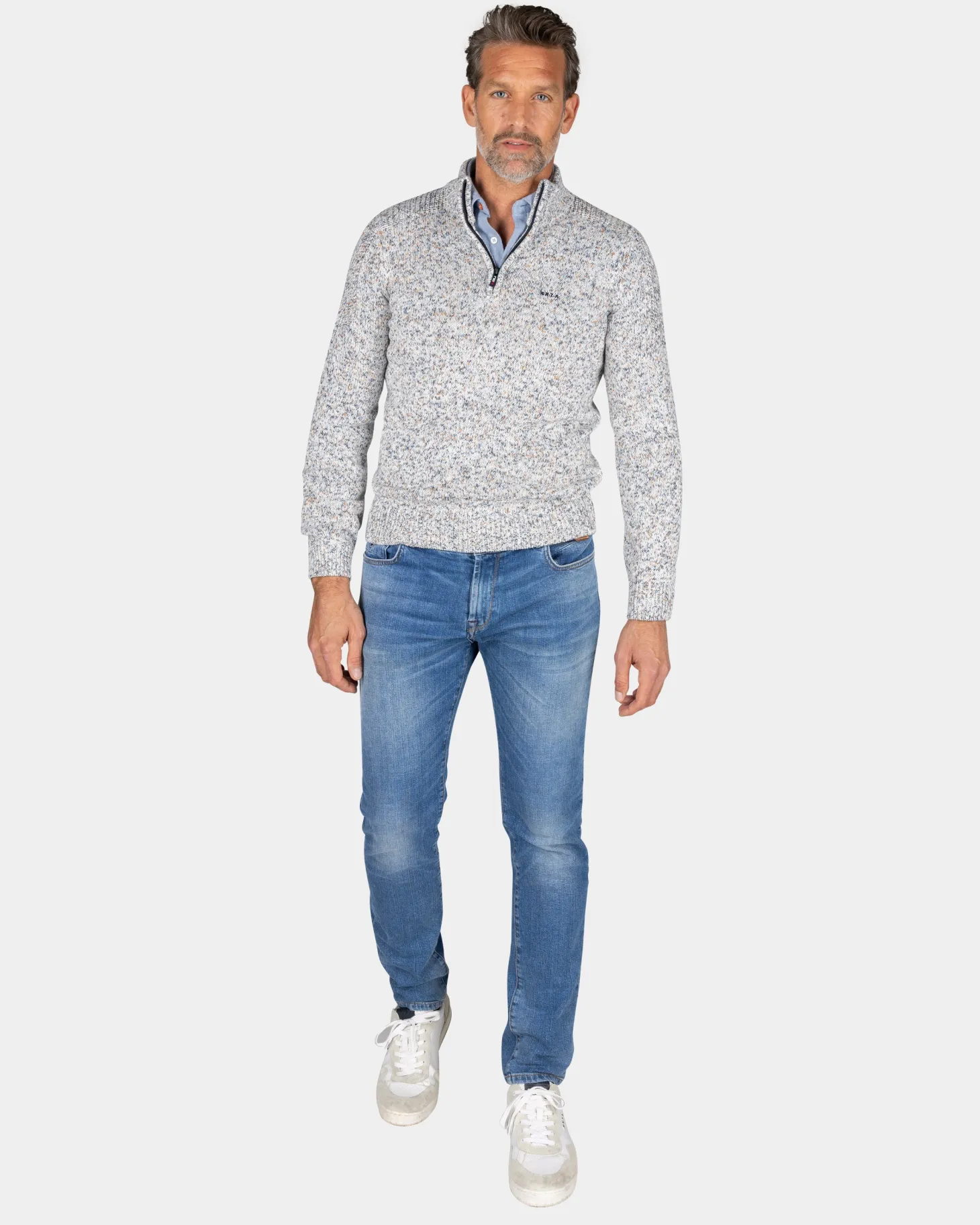 Grauer Strickpullover mit halbem Reißverschluss – Powder Sand