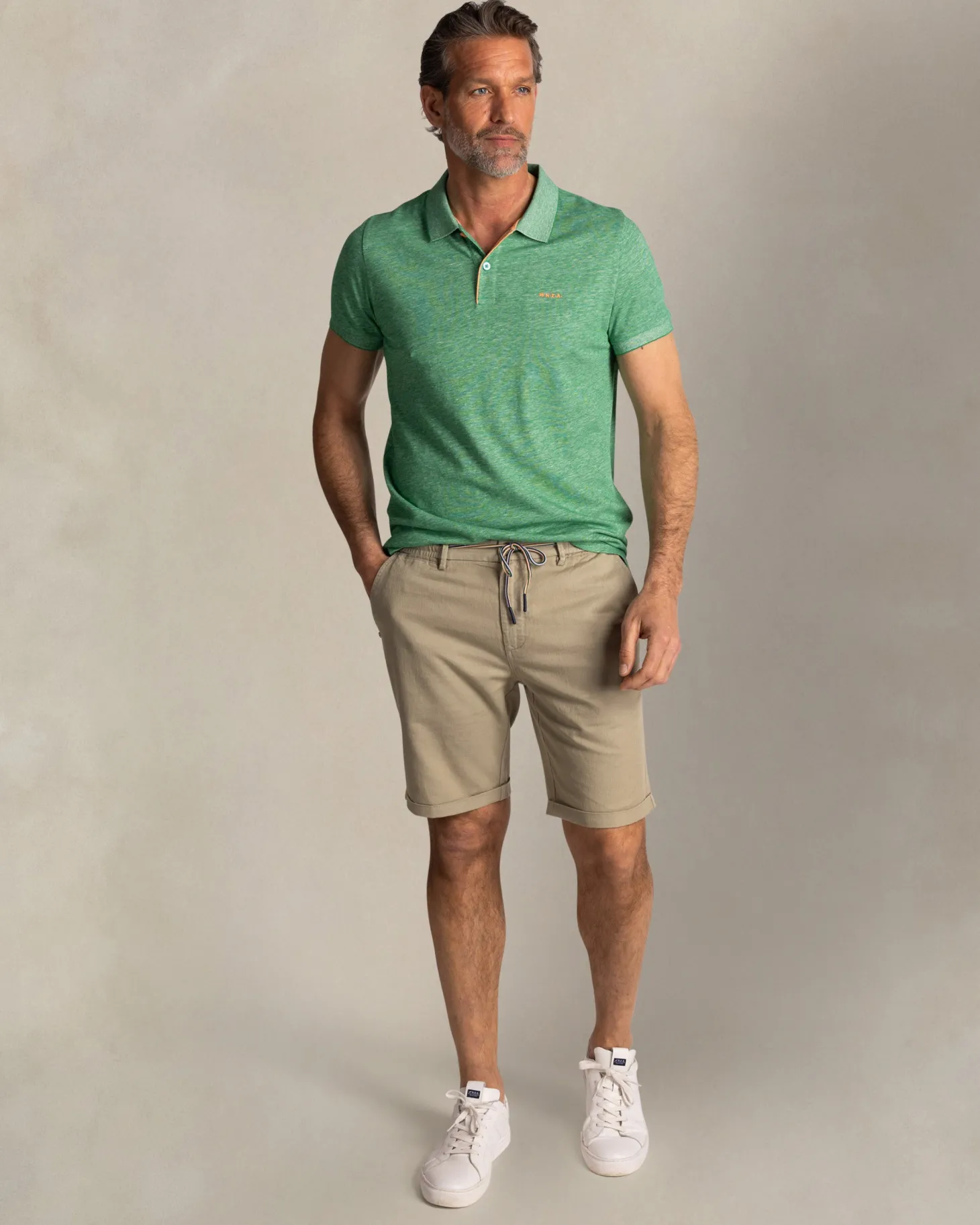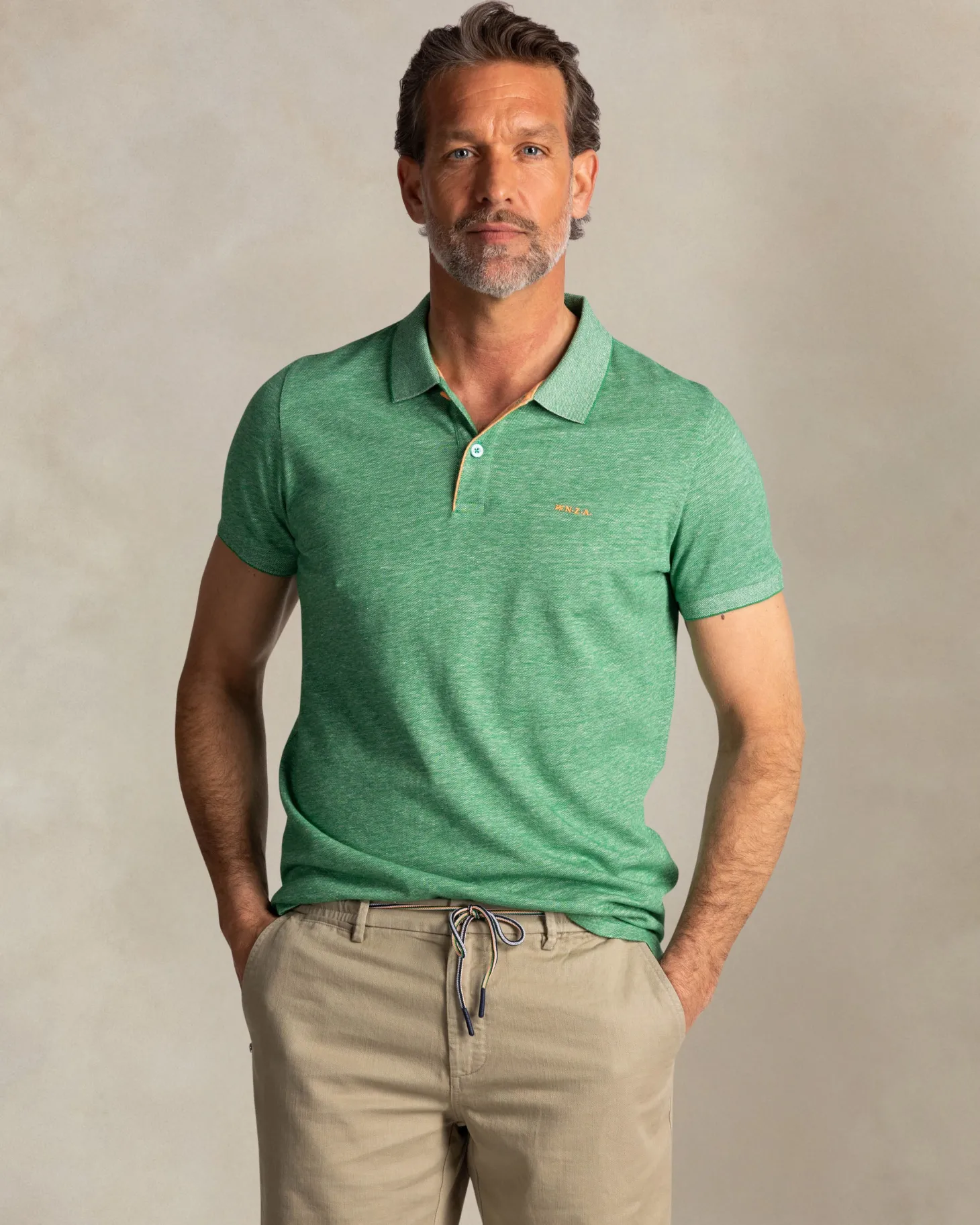 Grünes einfarbiges Poloshirt aus Baumwolle und Leinen