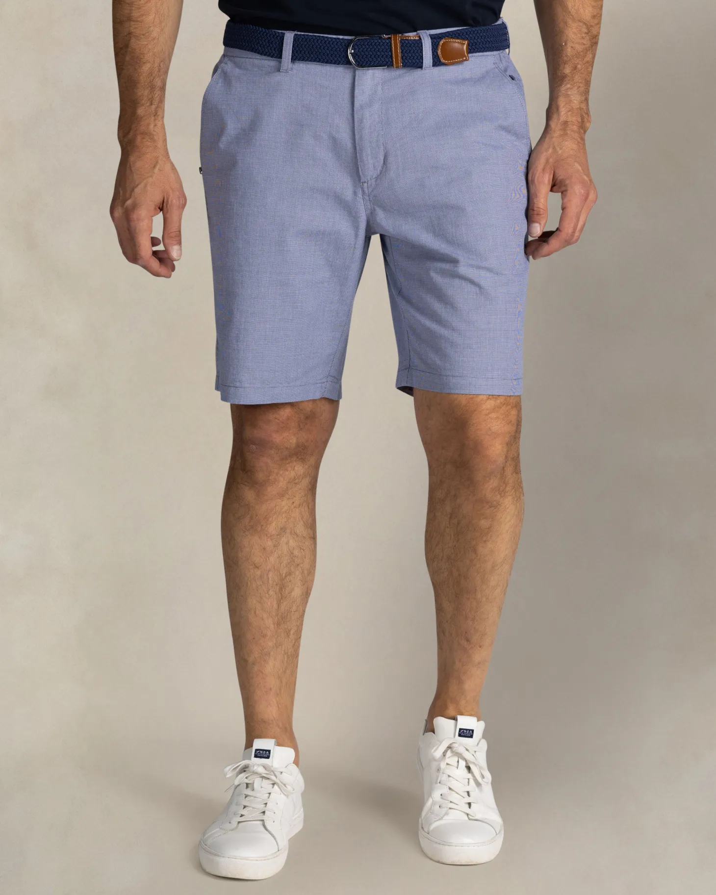 Gefertigt aus hochwertiger Baumwolle bieten diese Shorts den ganzen Tag über Atmungsaktivität und Komfort. Die klaren Linien und das minimalistische Design werden durch einen klassischen Knopfverschluss und Gürtelschlaufen ergänzt – ideal zum Kombinieren mit Accessoires. Tragen Sie dazu ein frisches weißes Hemd oder ein lässiges Polo für einen Look mit müheloser Raffinesse. Ob mit Sneakern oder Loafern – diese Shorts machen sowohl beim Strandspaziergang als auch beim abendlichen Ausgehen eine gute Figur.