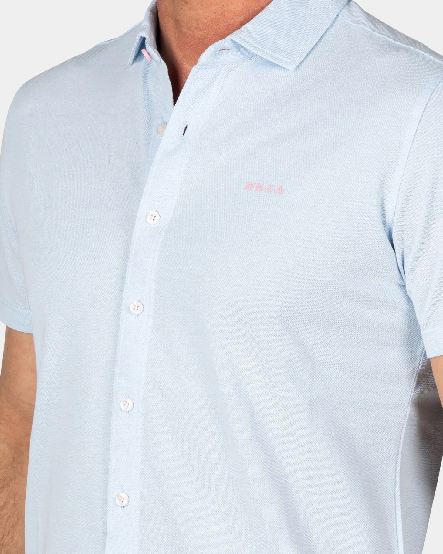 - Hemdkragen mit akzentfarbenem Knopf oben
