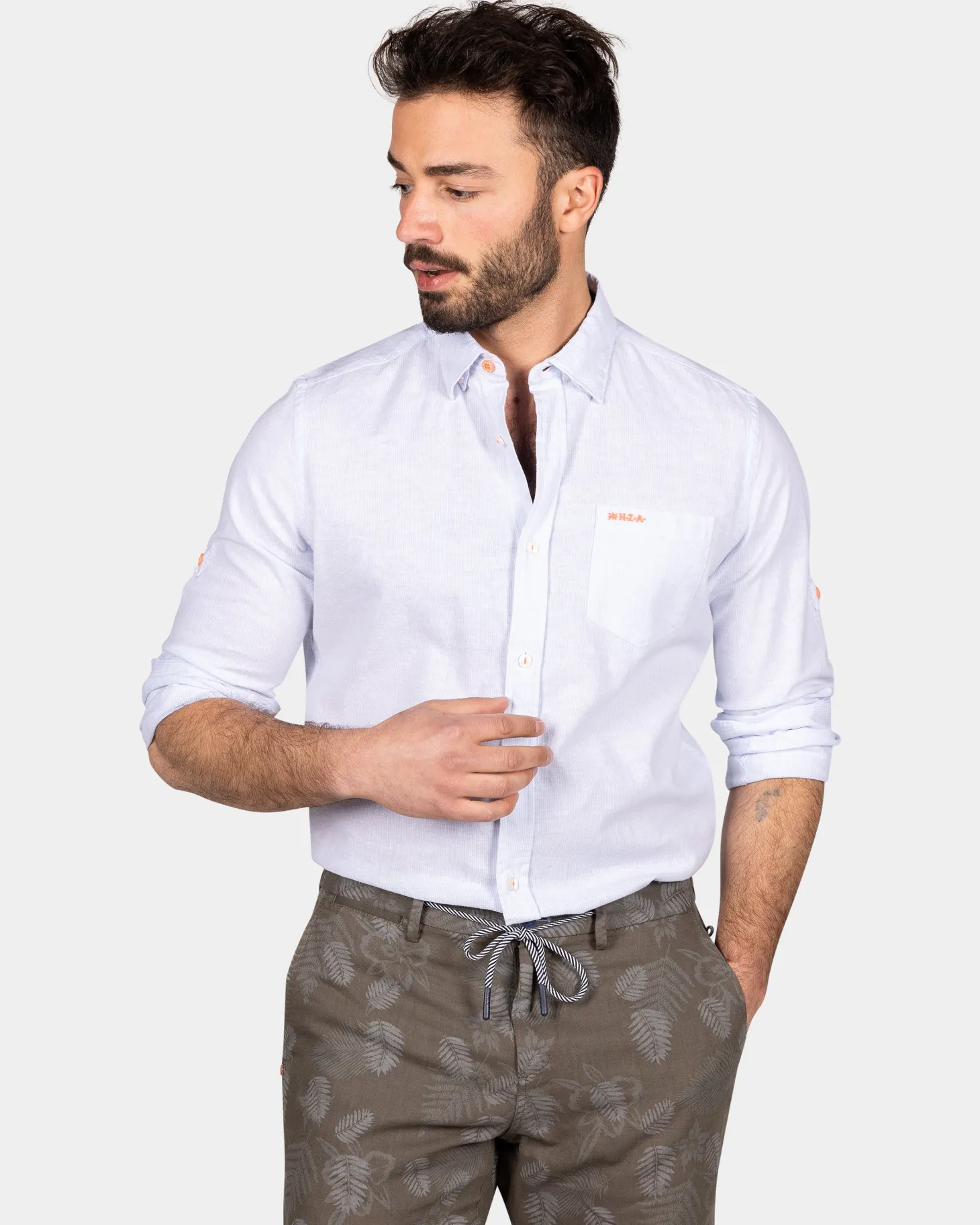 Hellblaues Leinenhemd mit Stretch – Light Sky