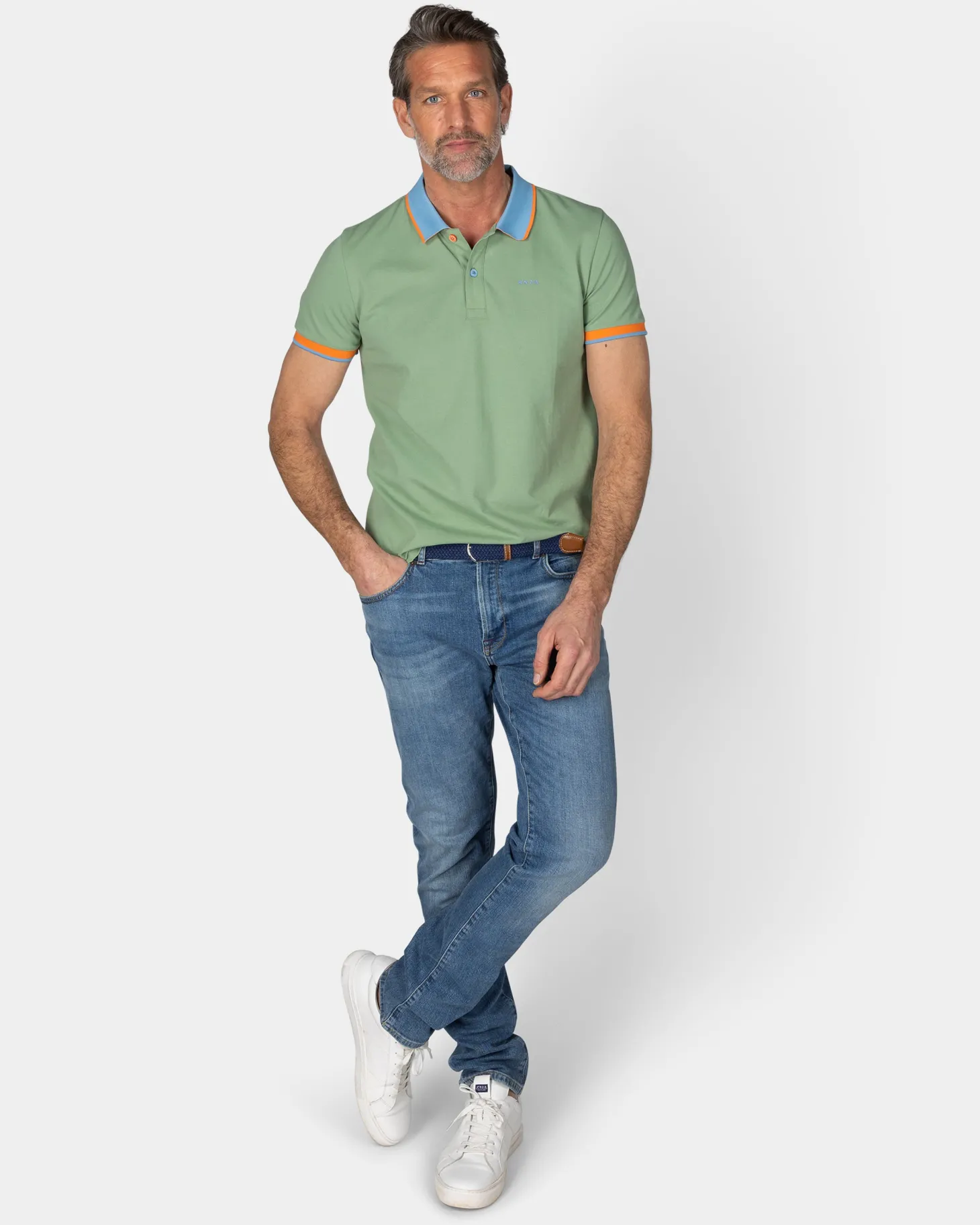 - Akzentfarbene Paspelierung an Manschetten und Kragen