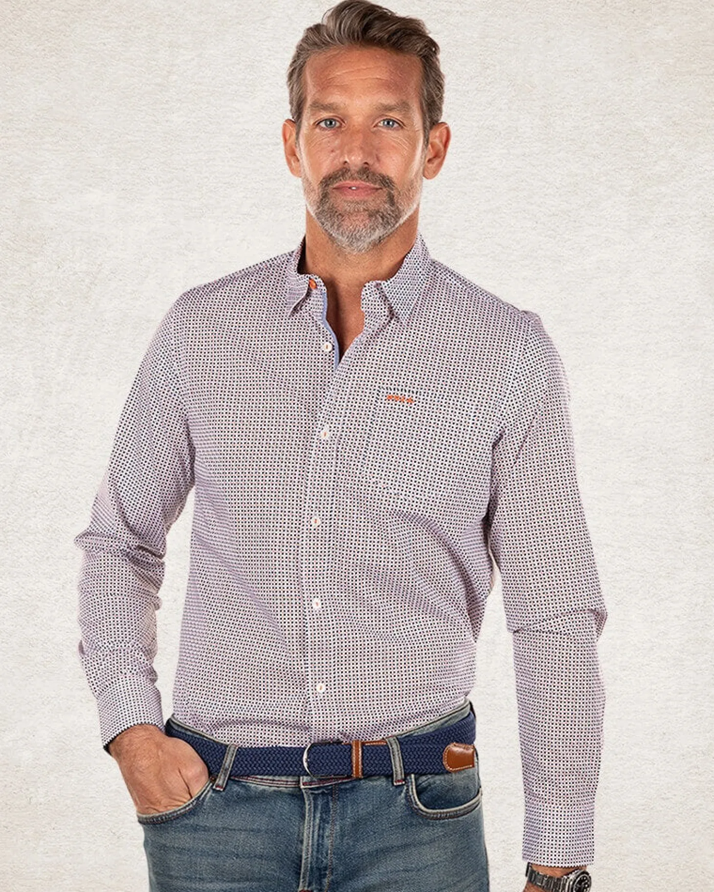 Hemd aus Baumwollstretch mit Aufdruck – Sahara Sand