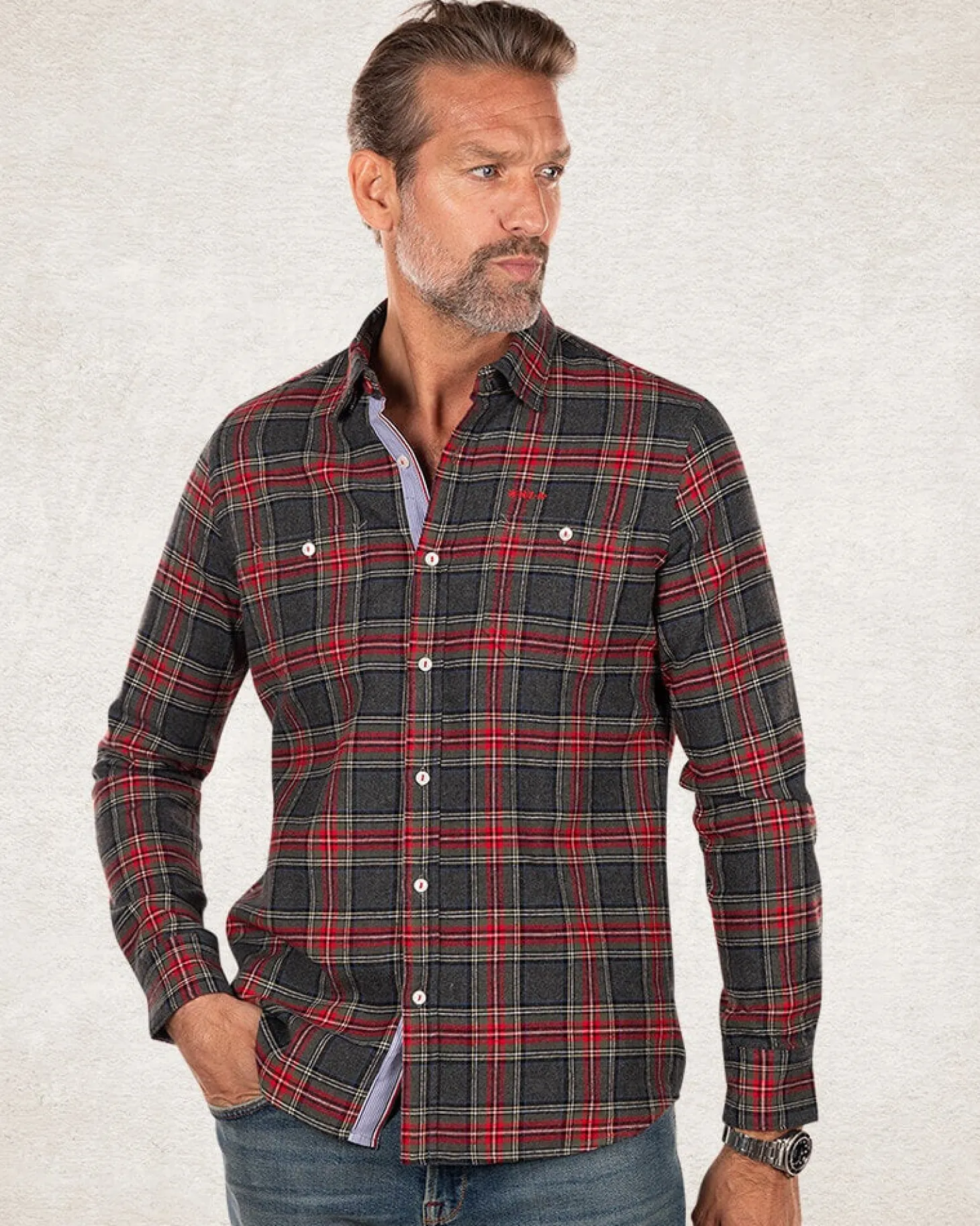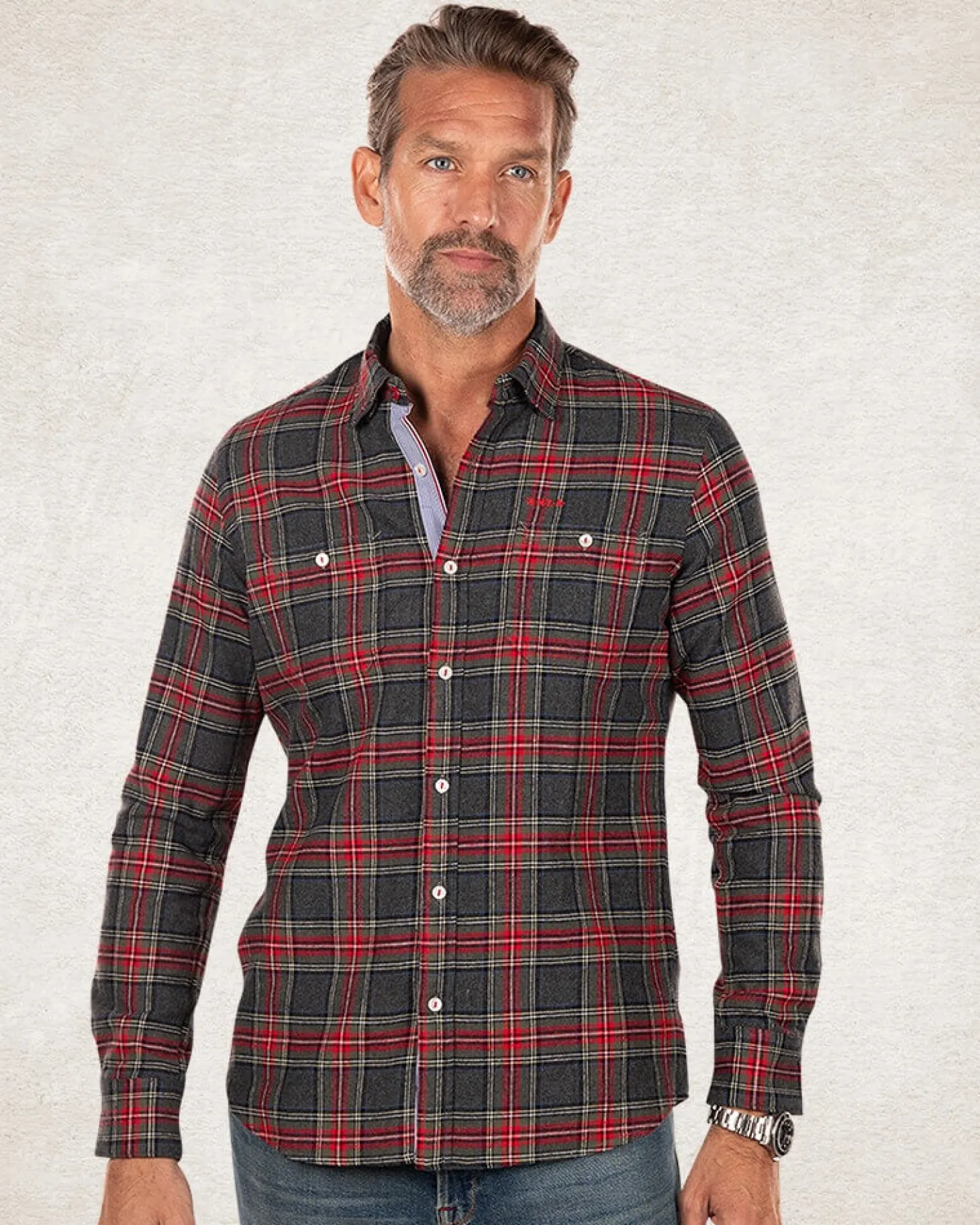 Kariertes graurotes Hemd – Grey Melange