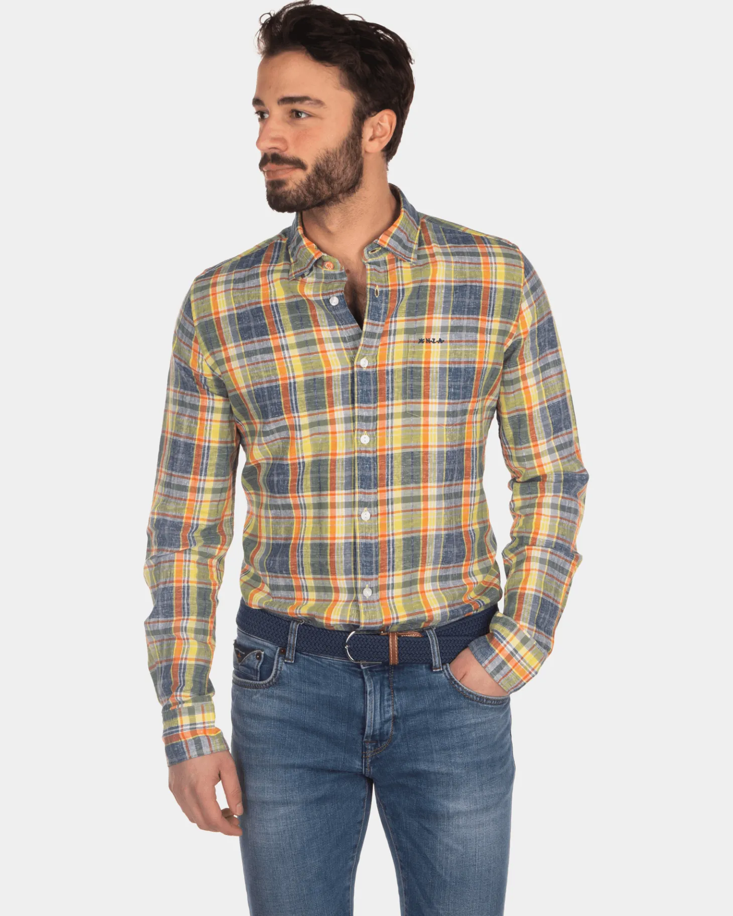 Kariertes Leinenhemd gelb blau rot – Blue Multicolour