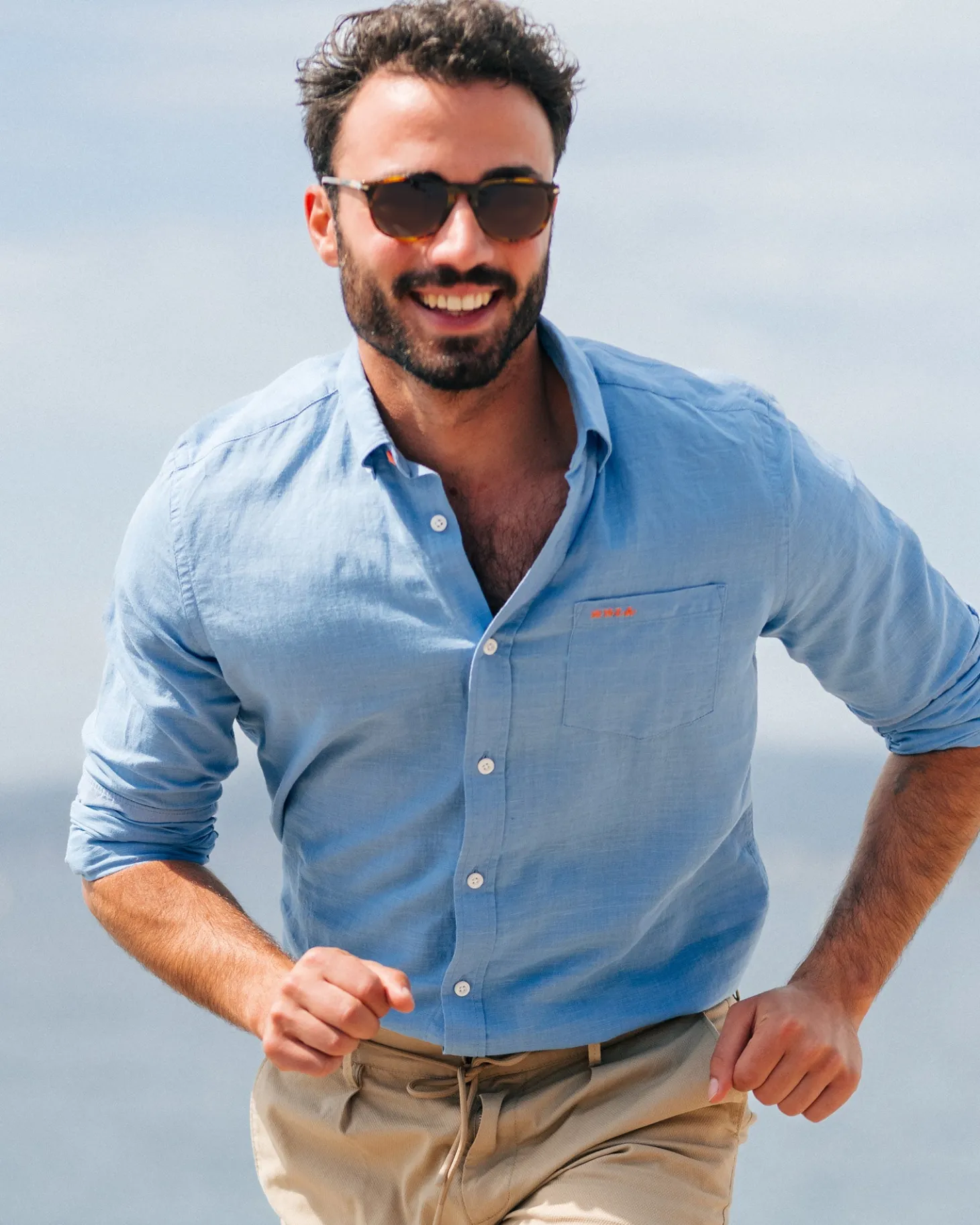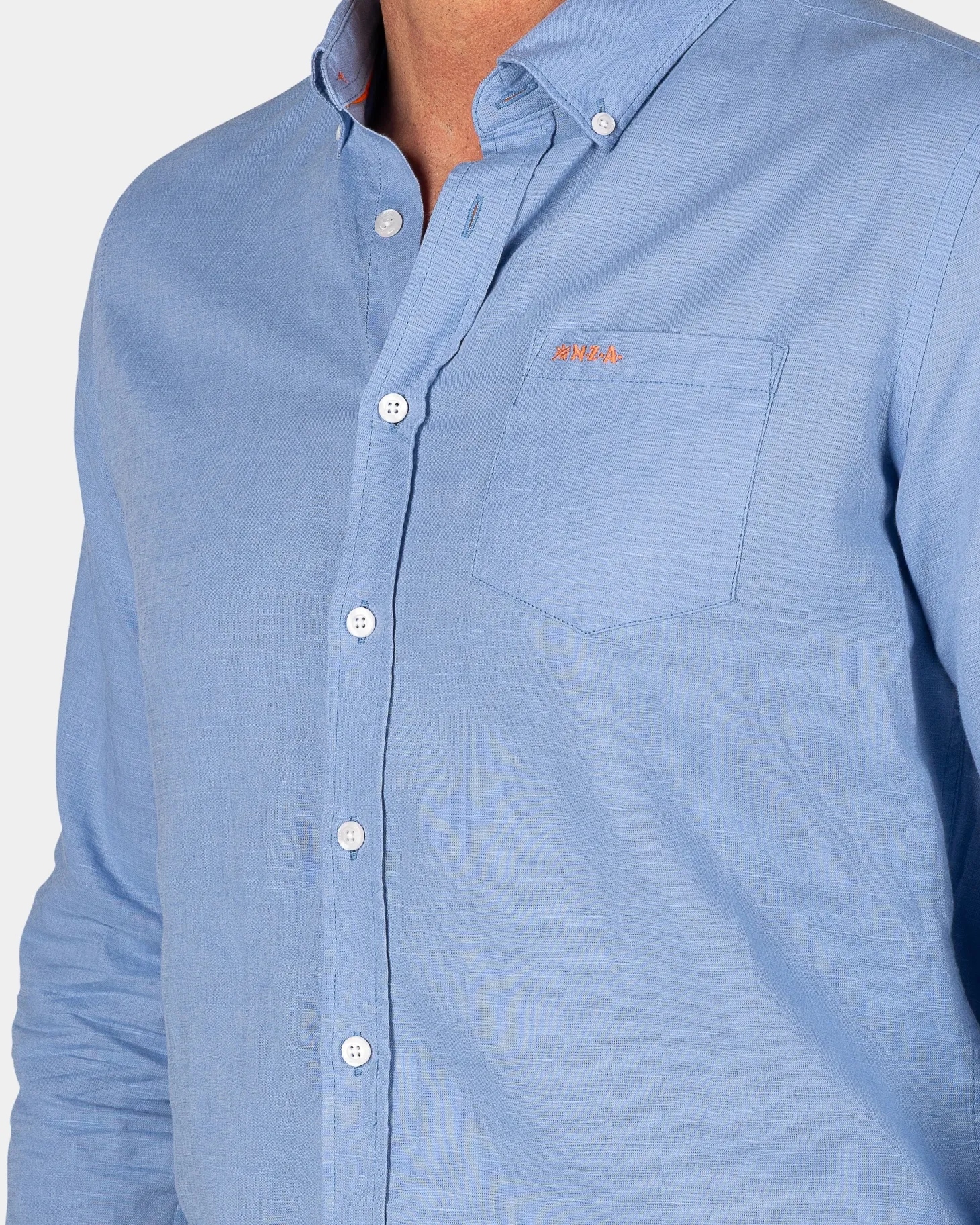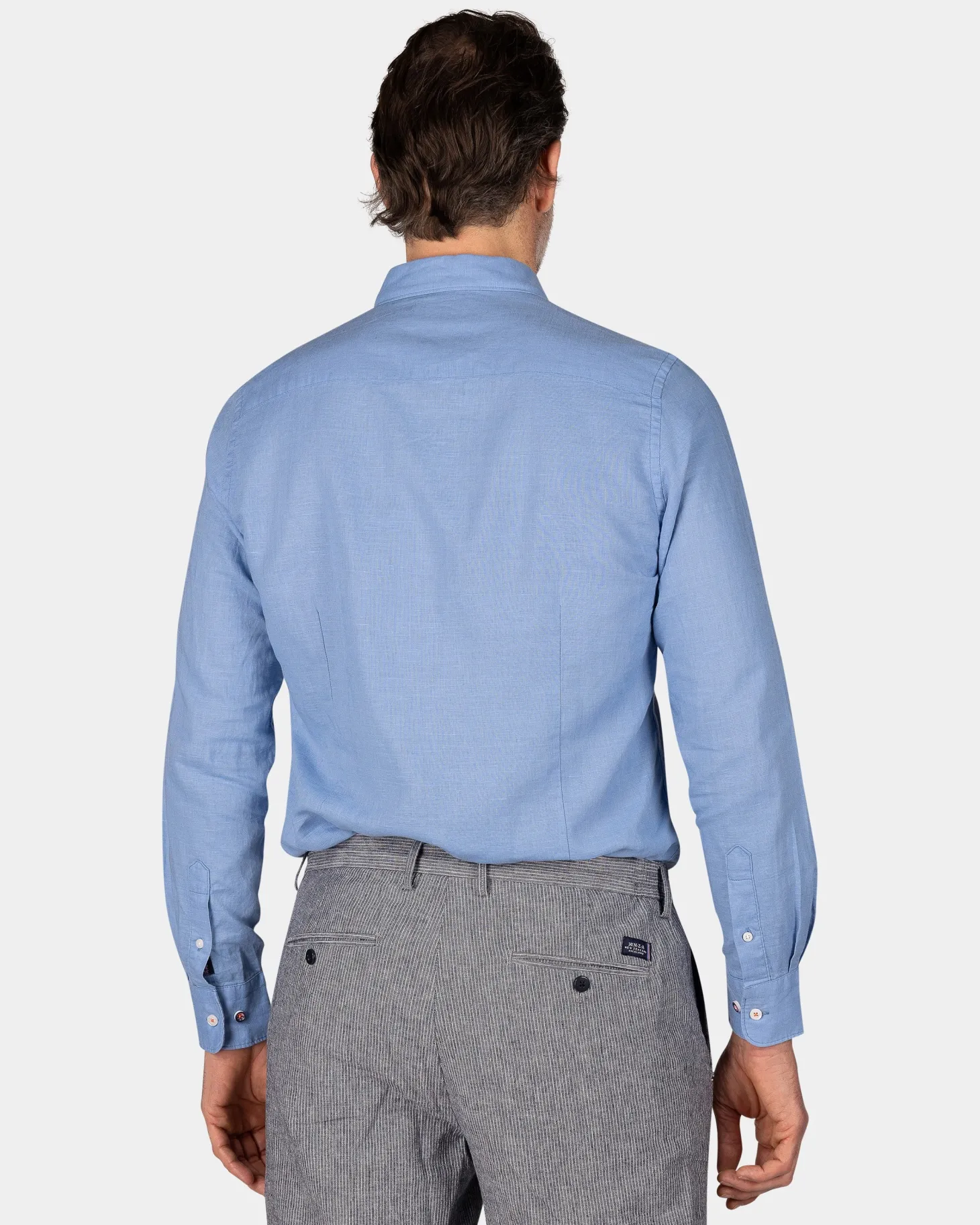 Leinen blaues Hemd mit langen Ärmeln