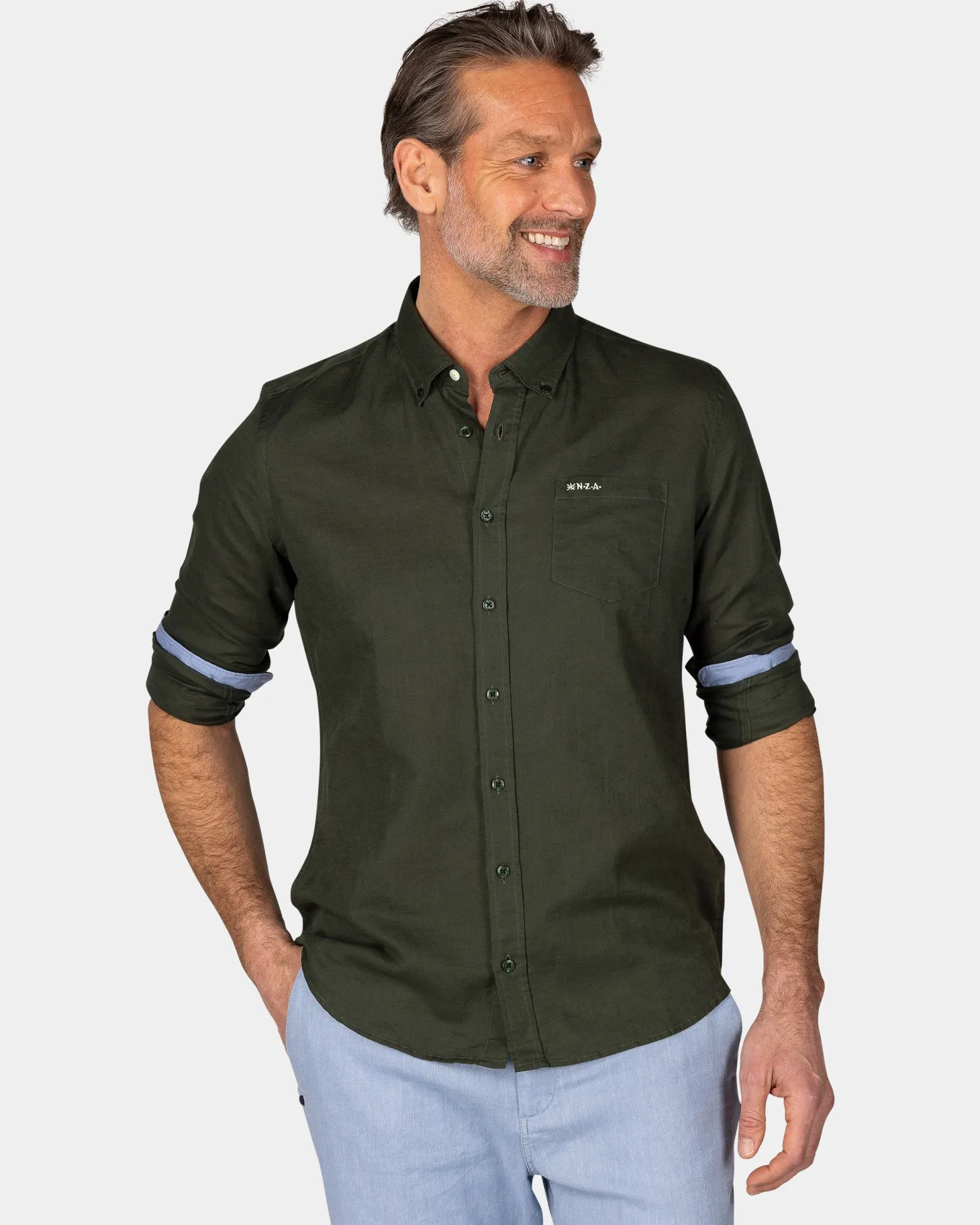 Leinen dunkelgrünes Hemd mit langen Ärmeln