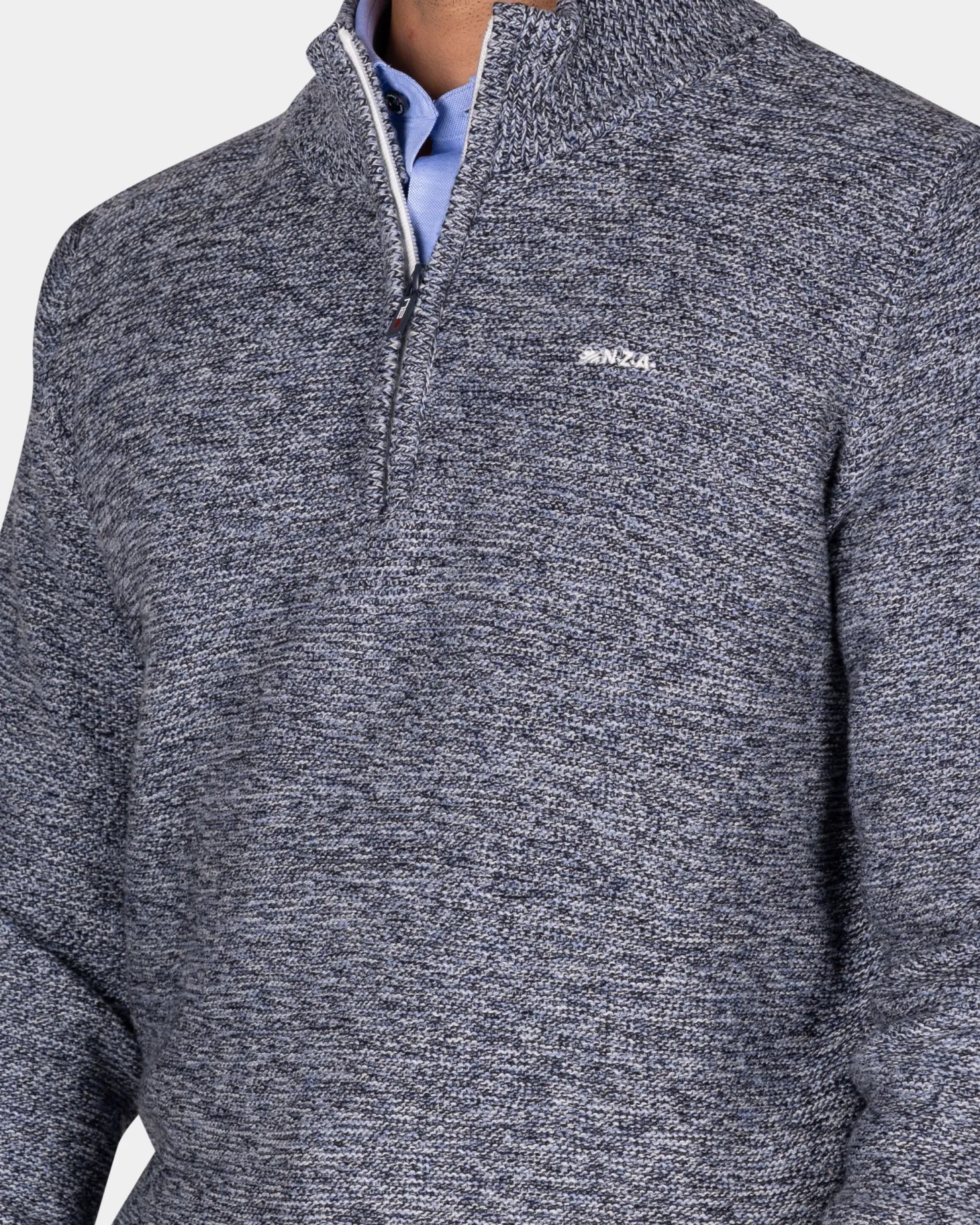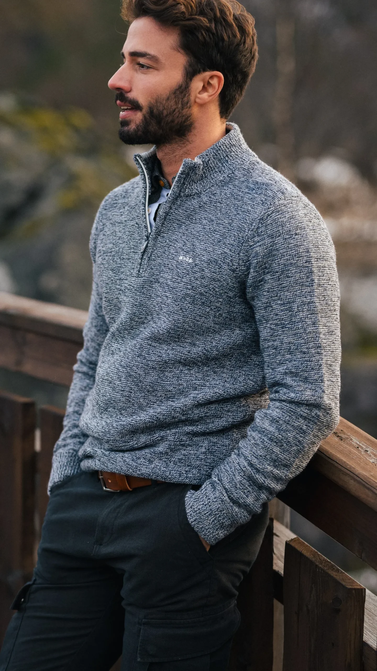 Marineblauer Strickpullover mit halbem Reißverschluss – Winter Navy