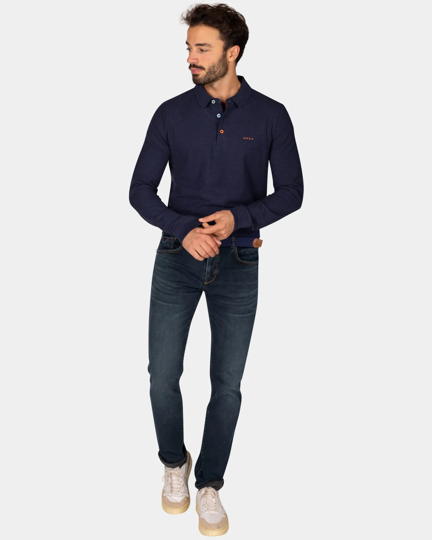 Navy Baumwoll Poloshirt mit langen Ärmeln – Autumn Navy
