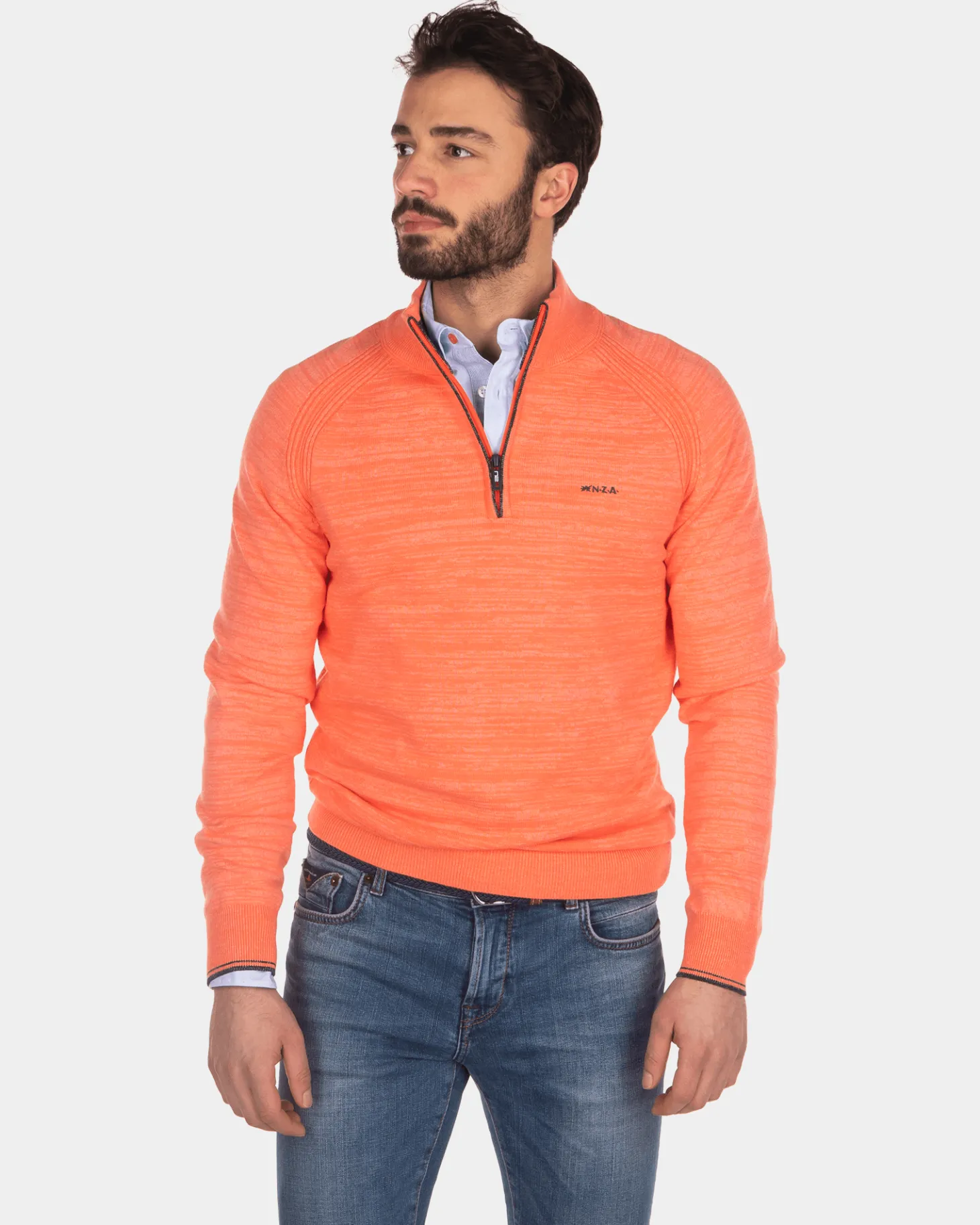 Pullover mit halbem Reißverschluss aus Baumwolle – Burned Orange