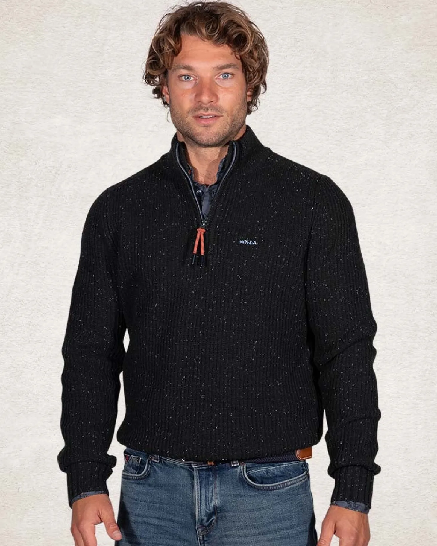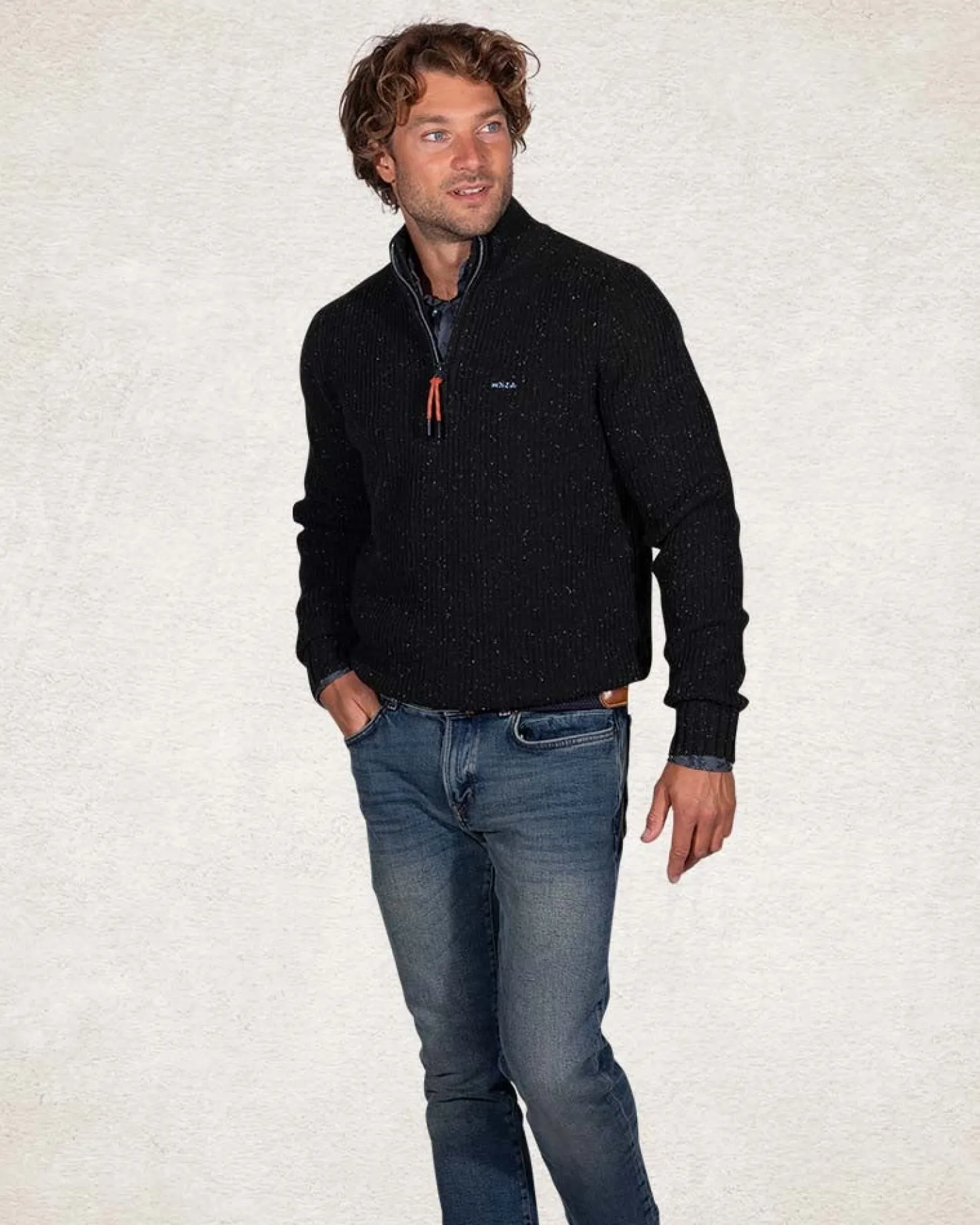 Pullover mit halbem Reißverschluss aus Wolle und Baumwolle – Crushing Green