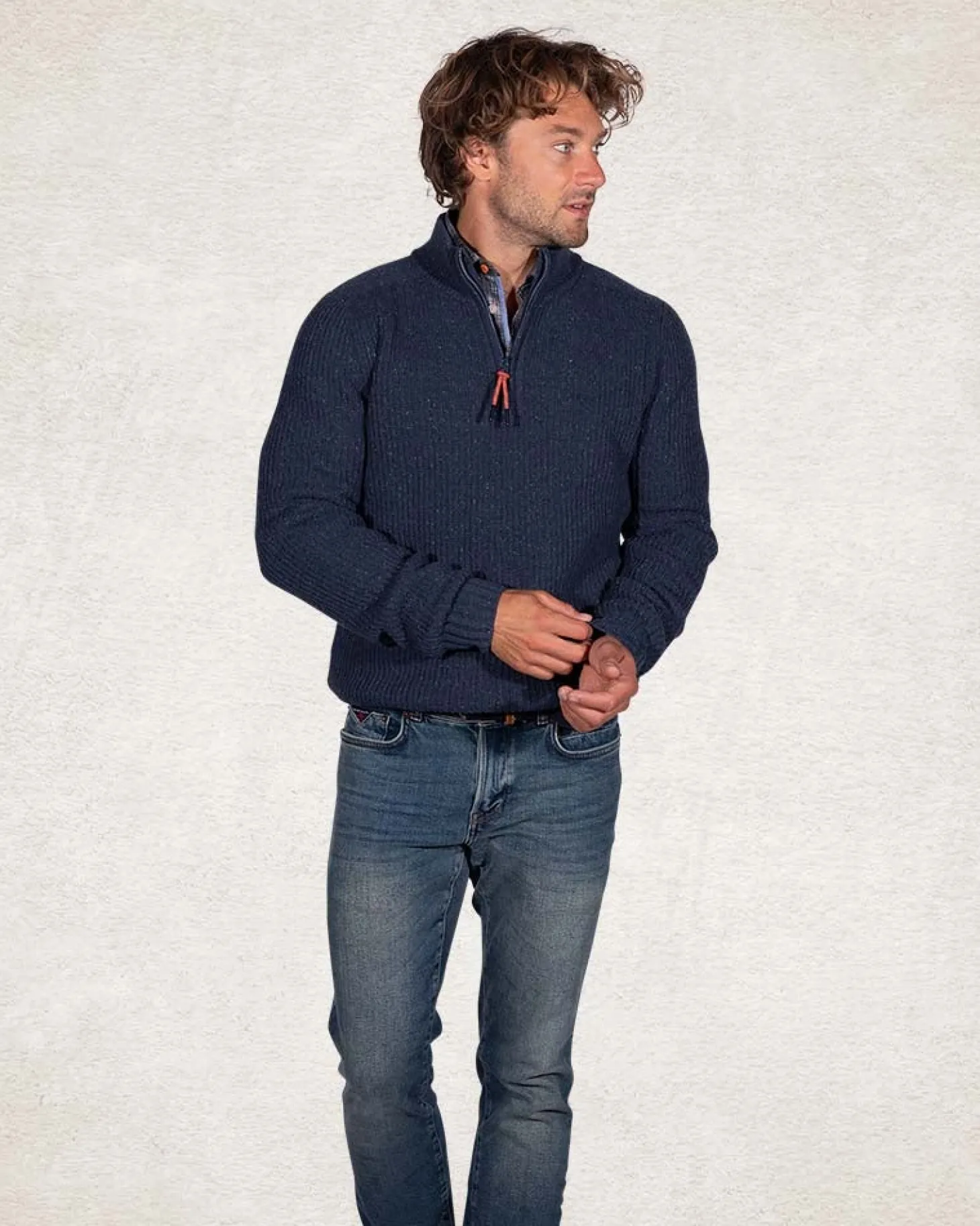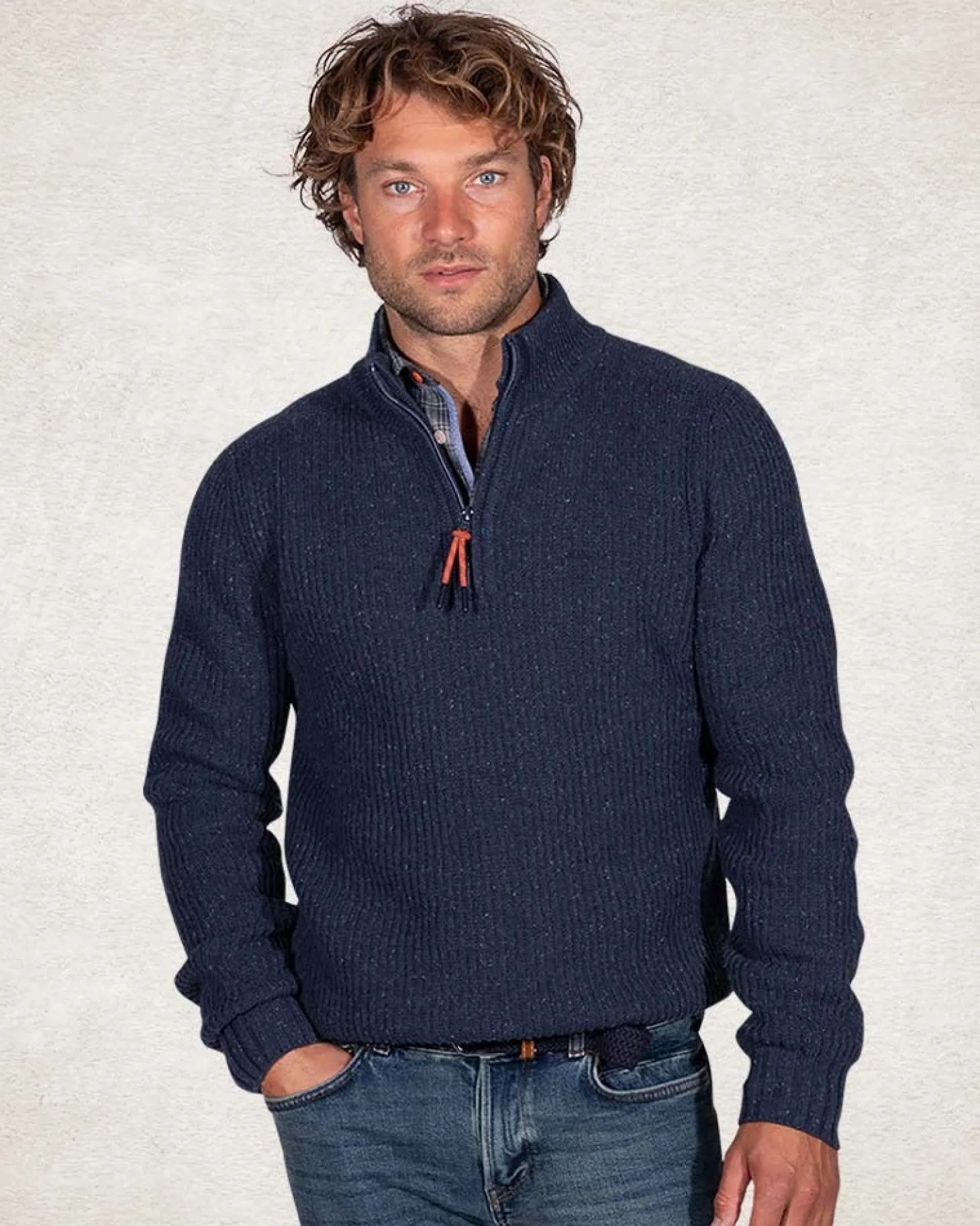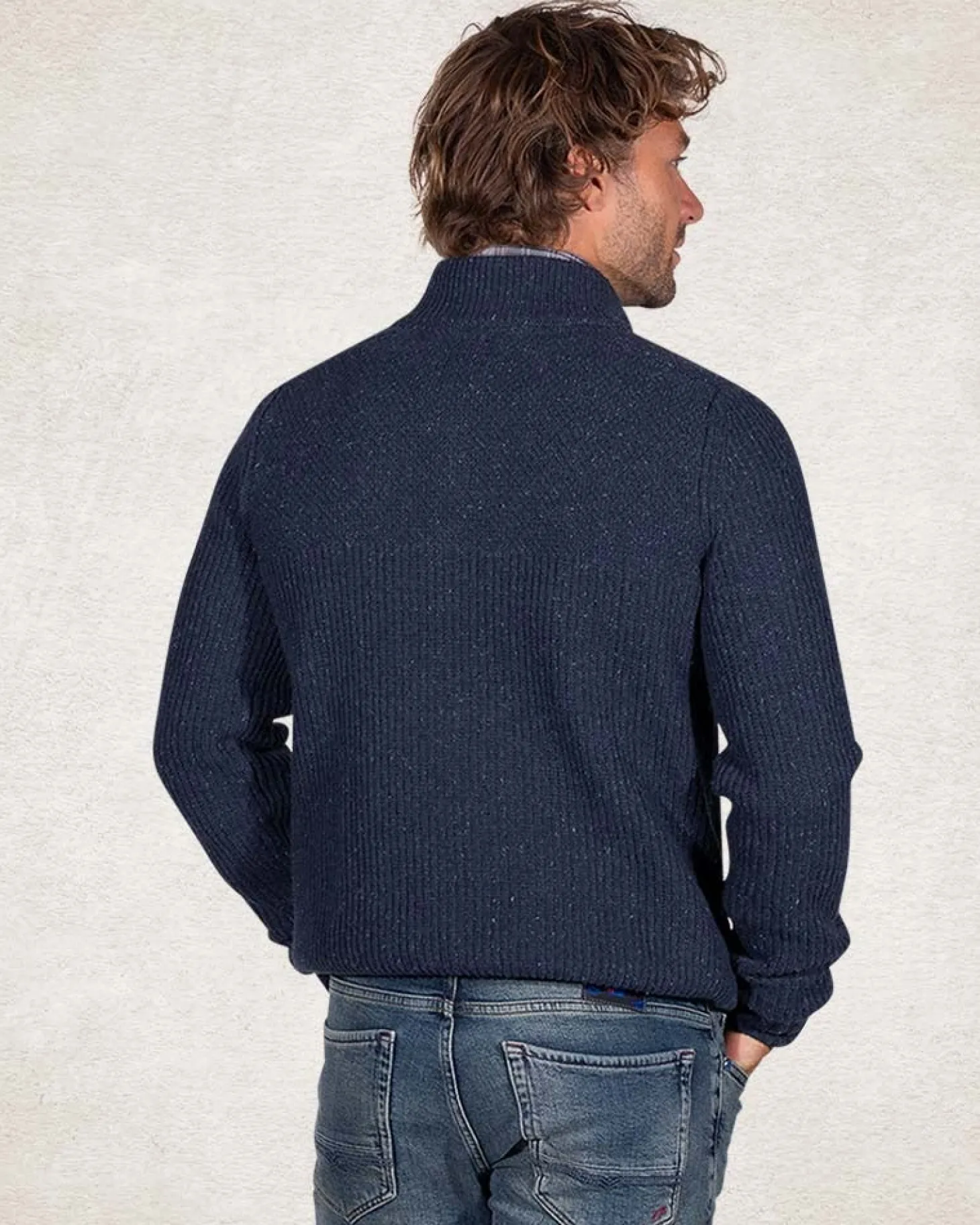 Pullover mit halbem Reißverschluss aus Wolle und Baumwolle – Trent Petrol