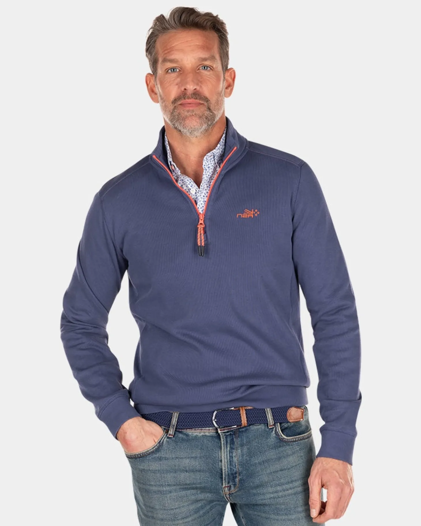 Schlichter Baumwollpullover mit Reißverschluss – Dusk Navy