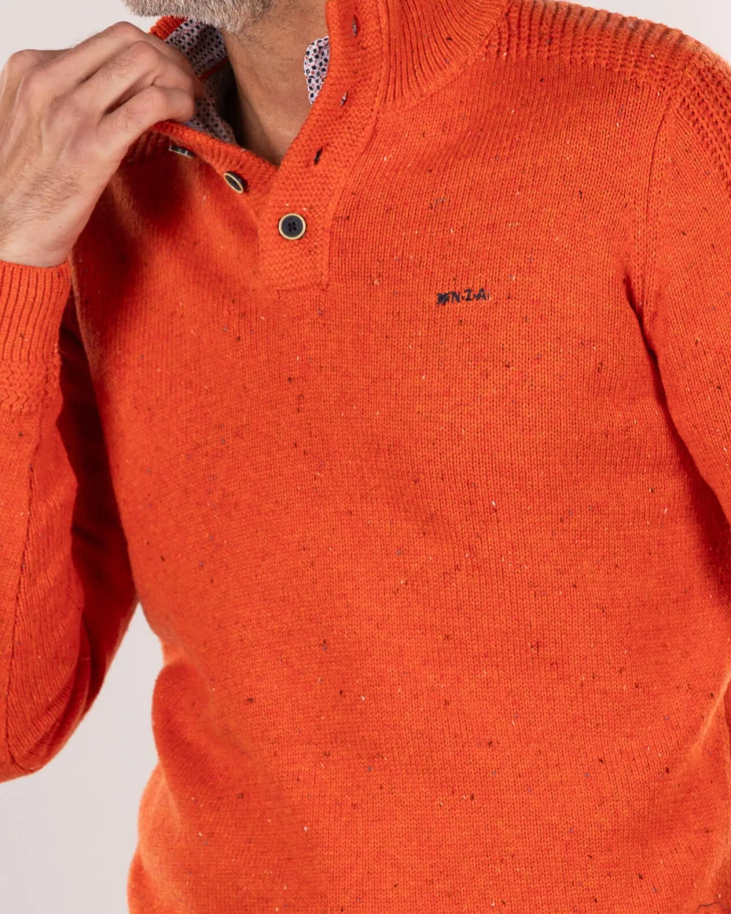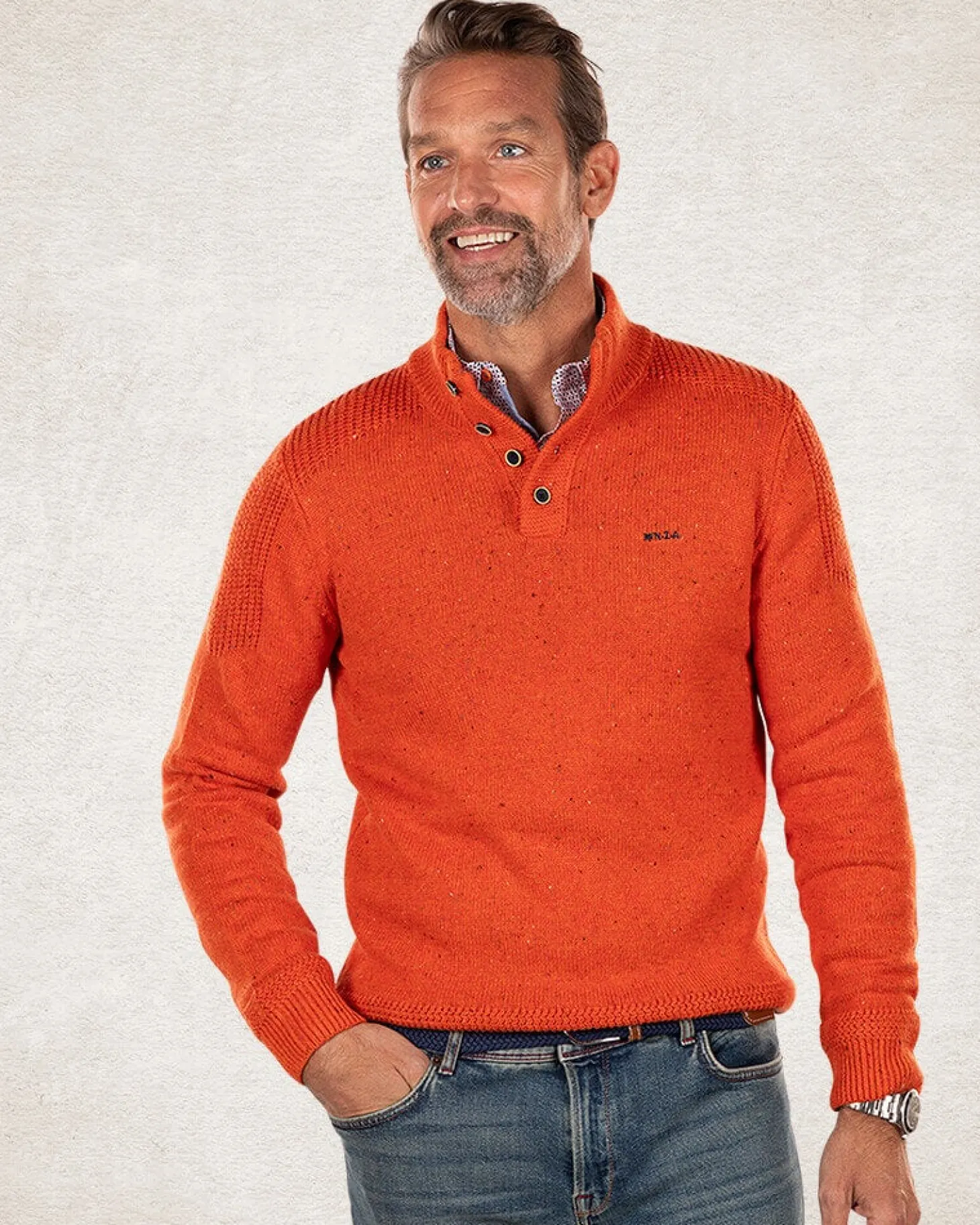 Schlichter Pullover mit halber Knopfleiste – Ginger Orange