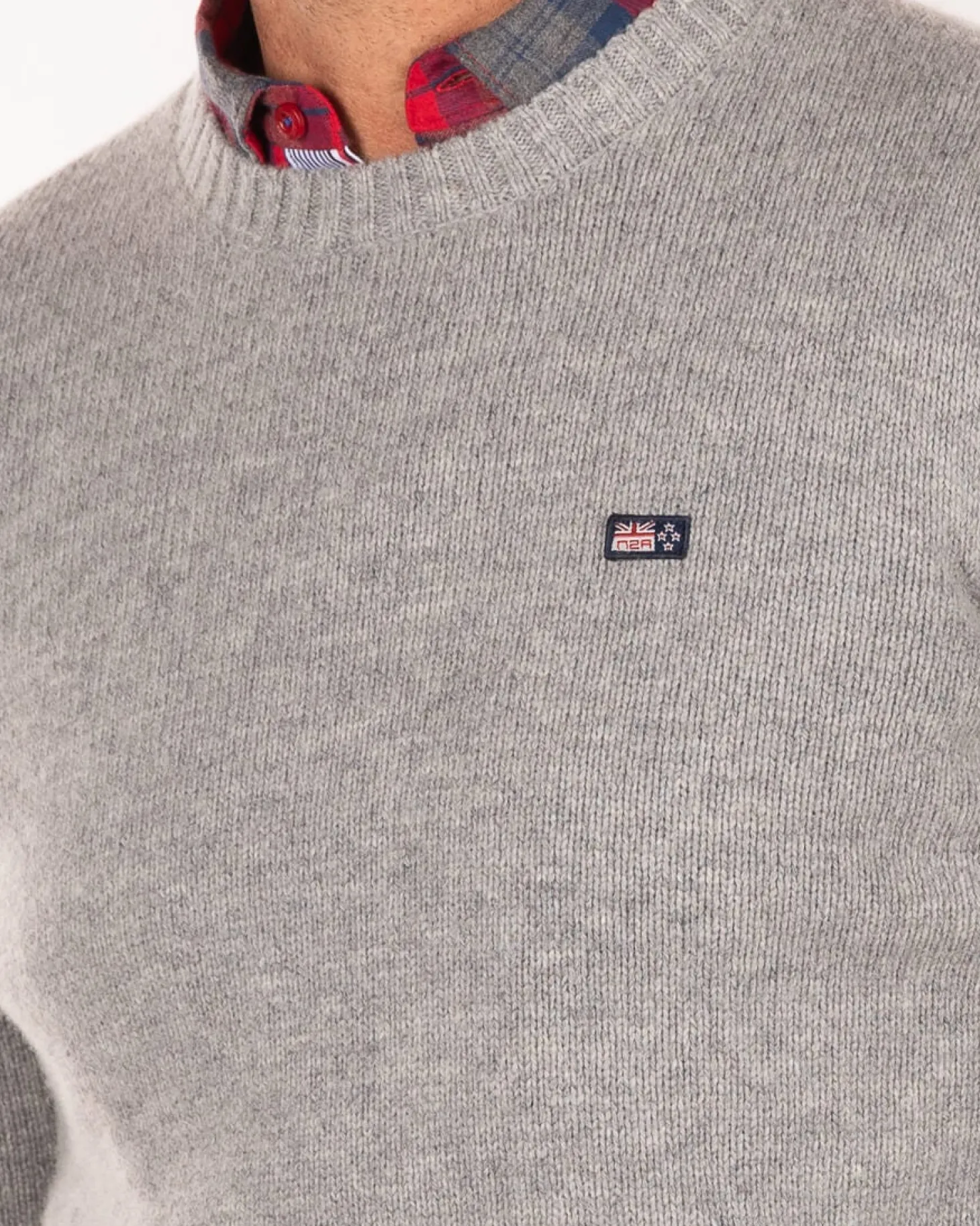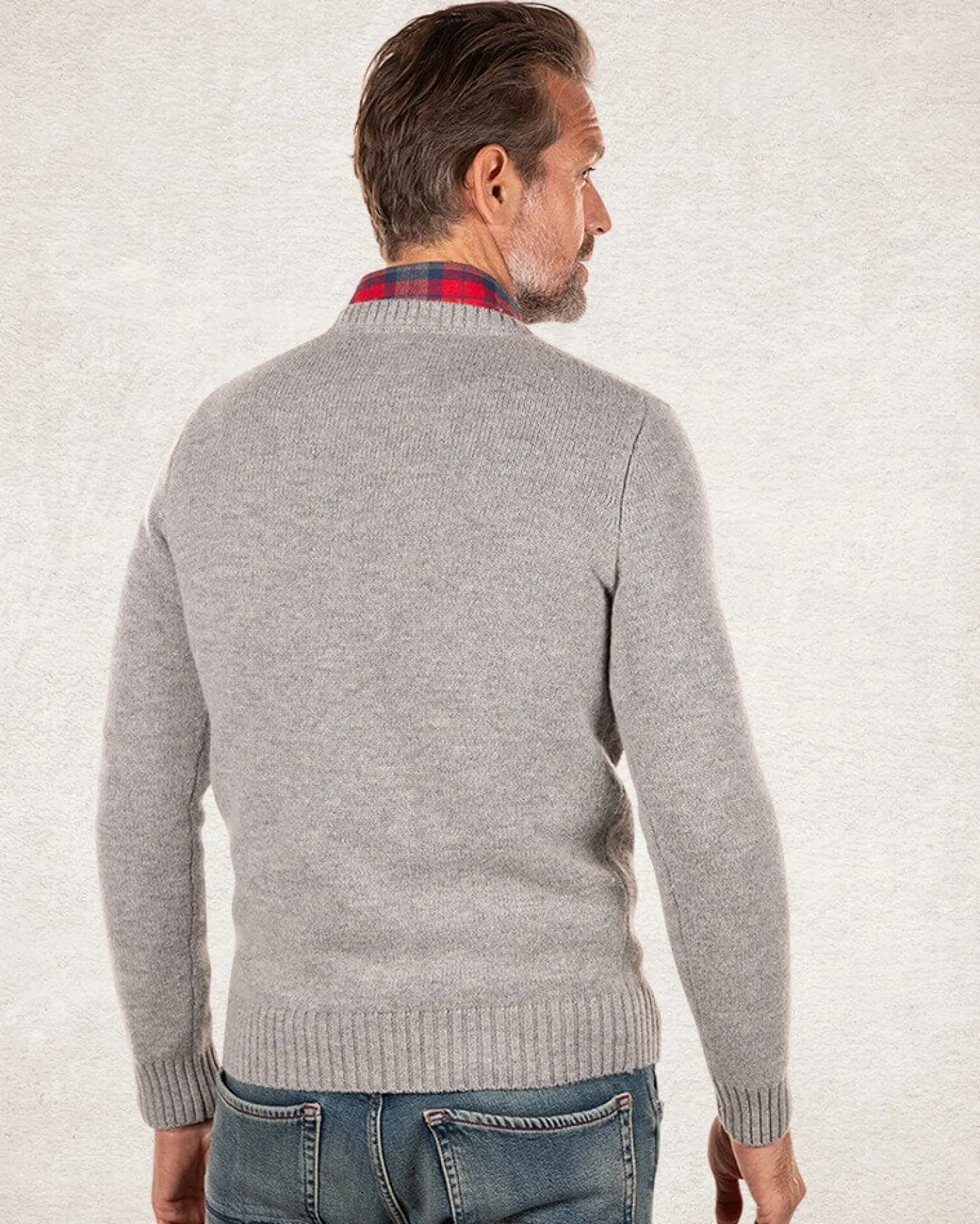 Schlichter Pullover mit Rundhalsausschnitt aus Wolle – Grey Melange