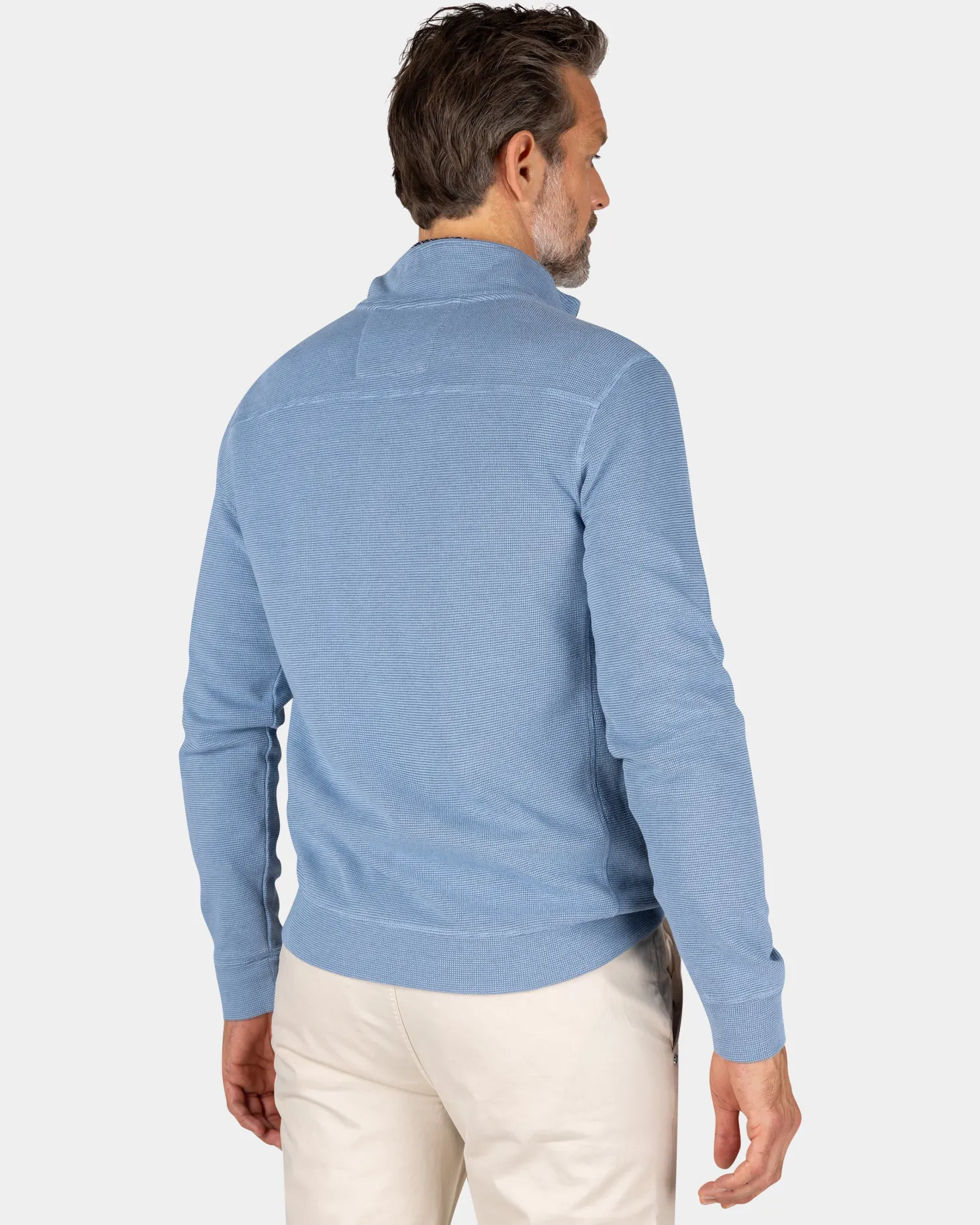 Sportlicher blauer Pullover mit halbem Reißverschluss – Brave Blue