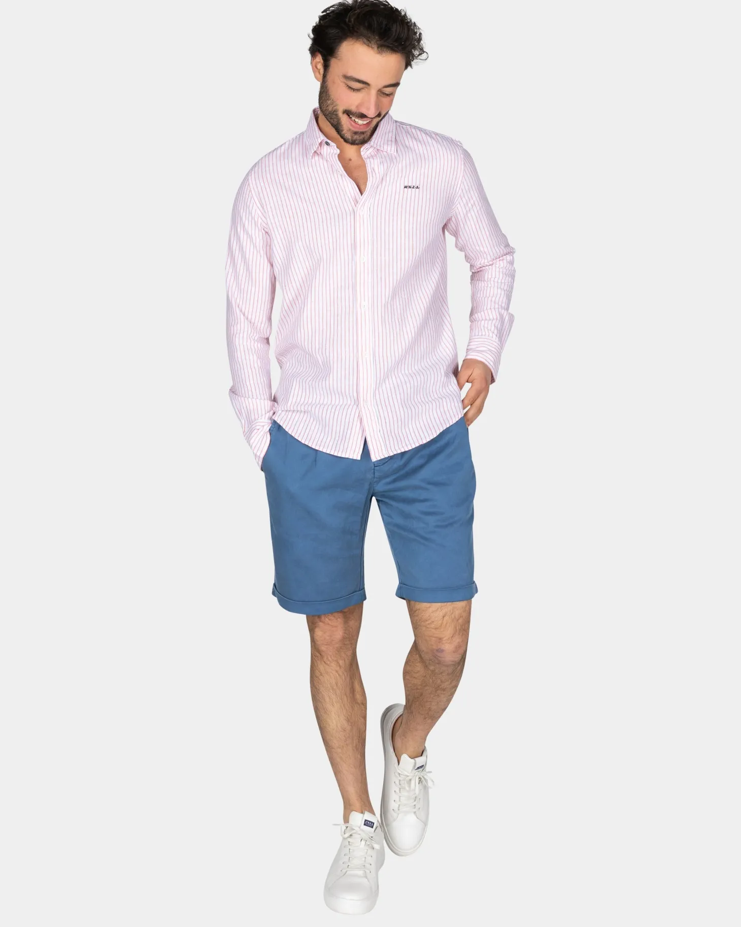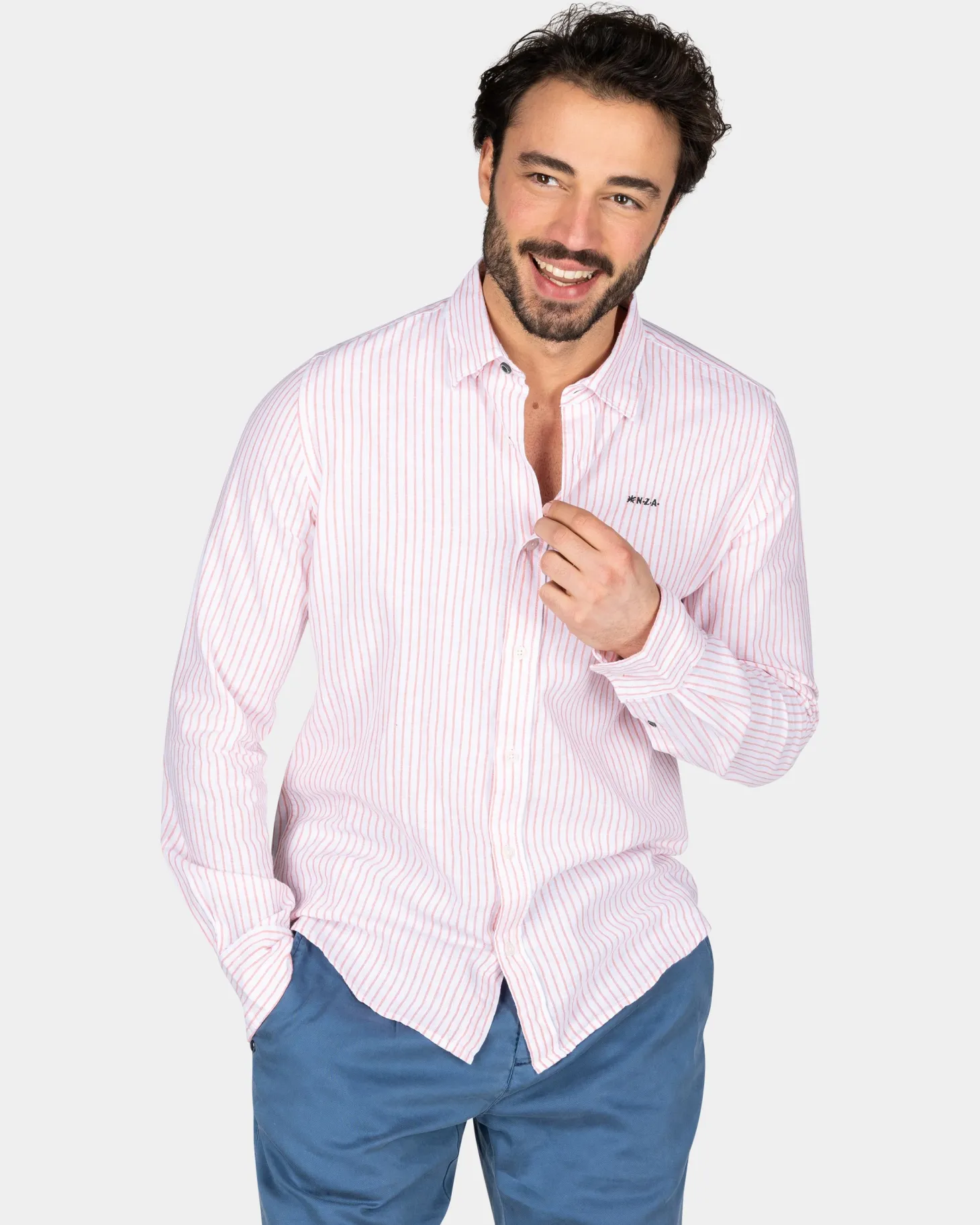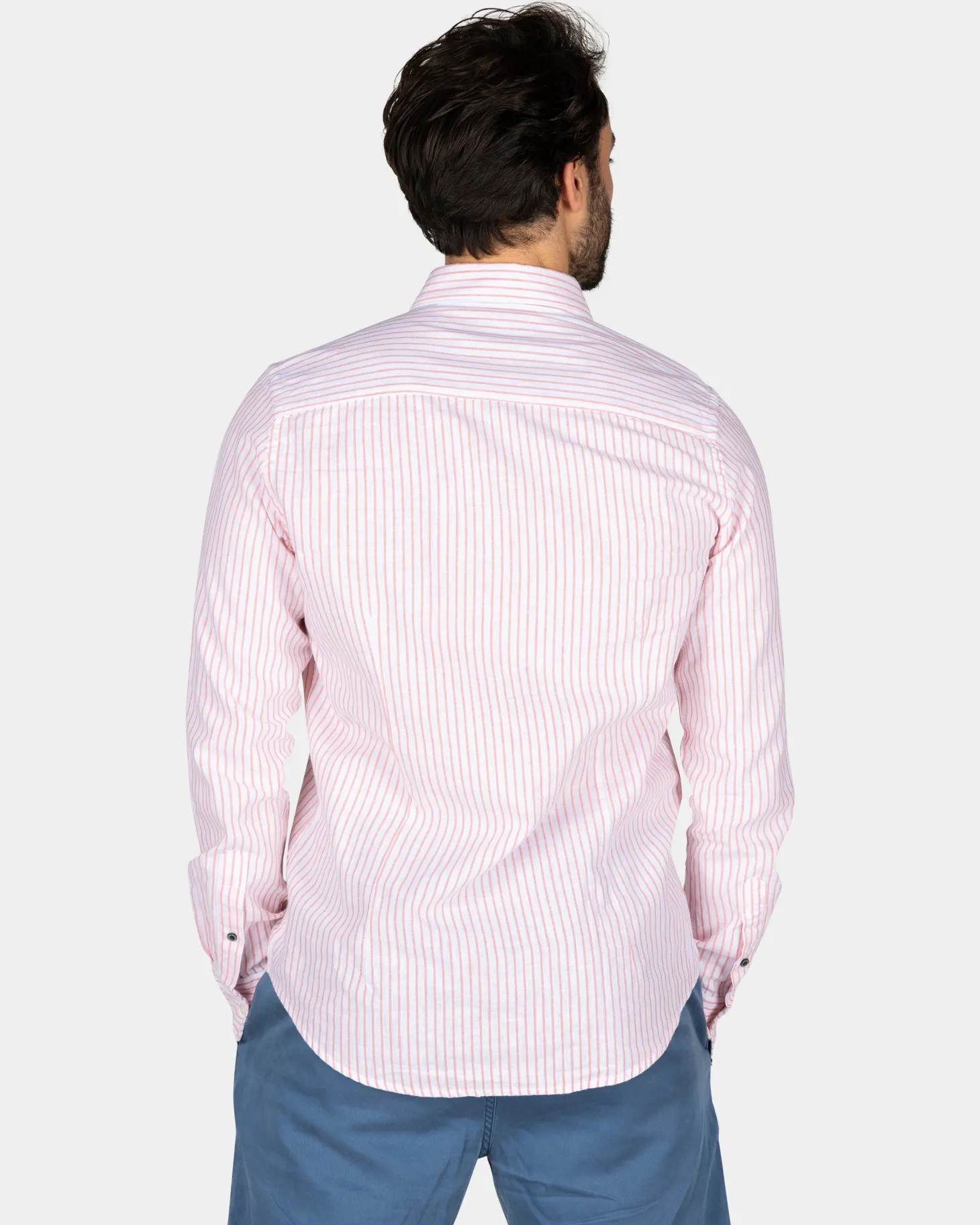 Weißes Leinenhemd mit hellorangefarbenem Streifen